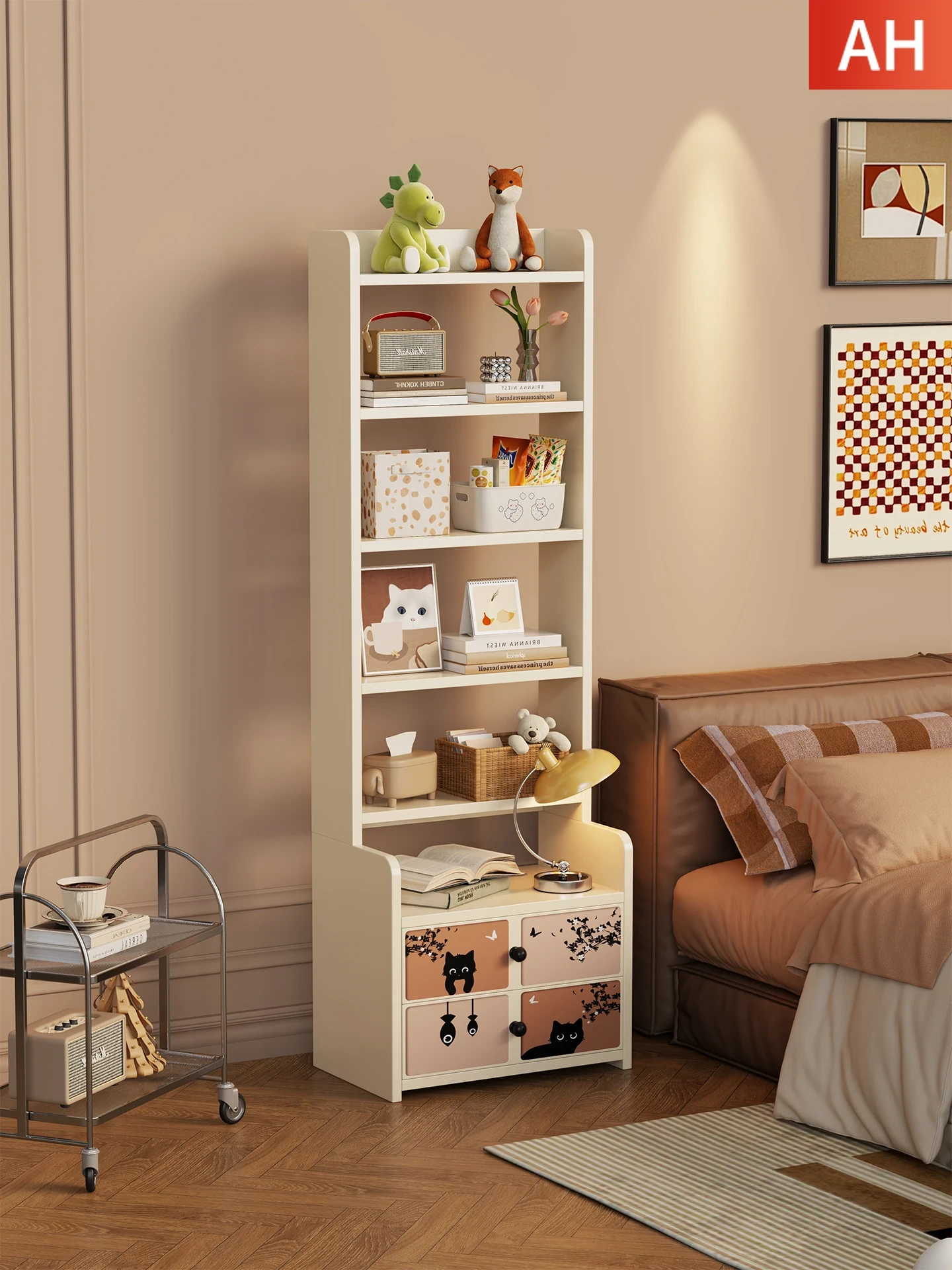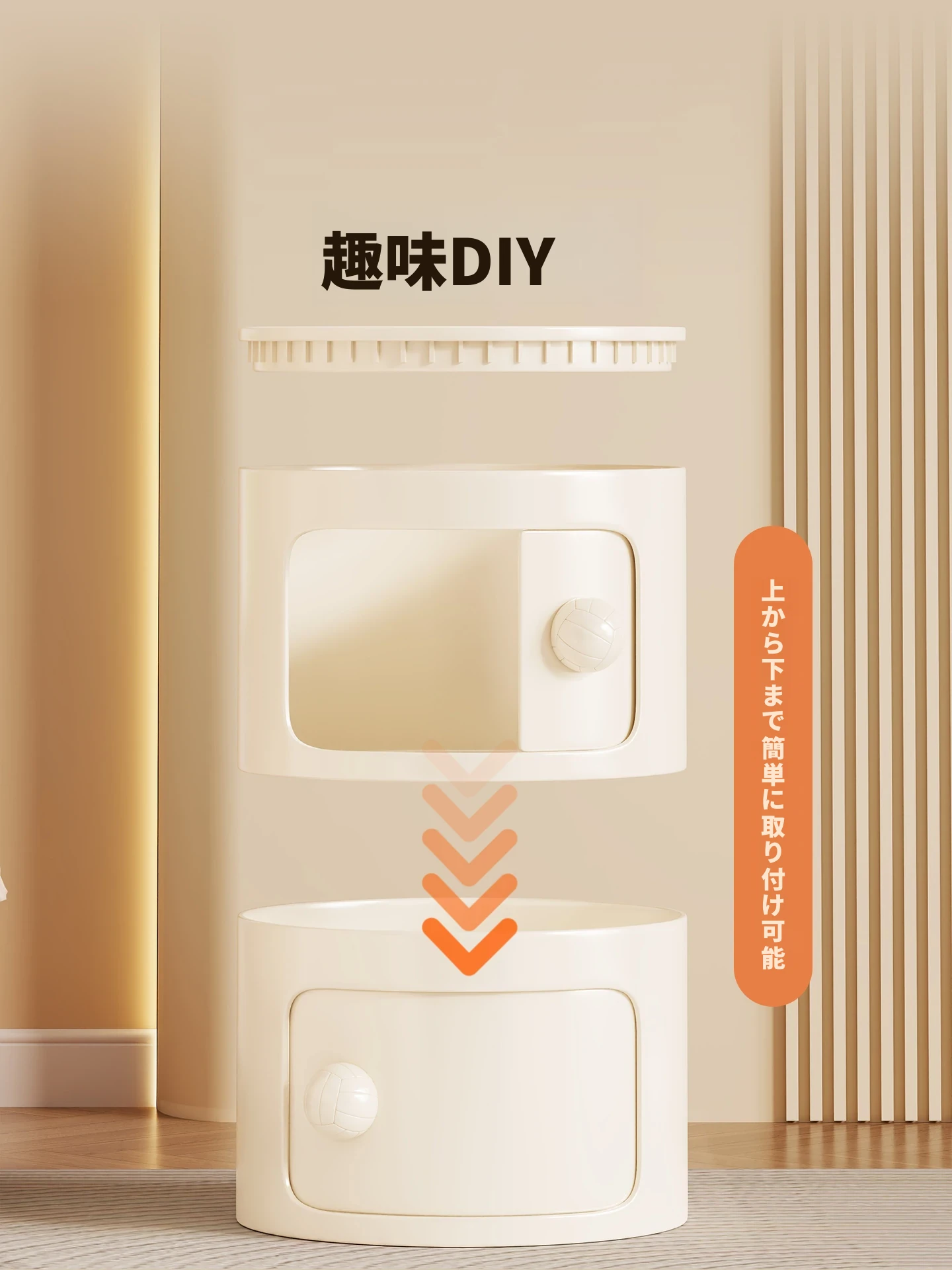 子供部屋にぴったり!可愛らしいデザインの多層収納キャビネット - ベッドサイドで使えるコンパクトな引き出し付き!簡単に整理整頓できる多機能家具で、お部屋をスッキリとお洒落に。