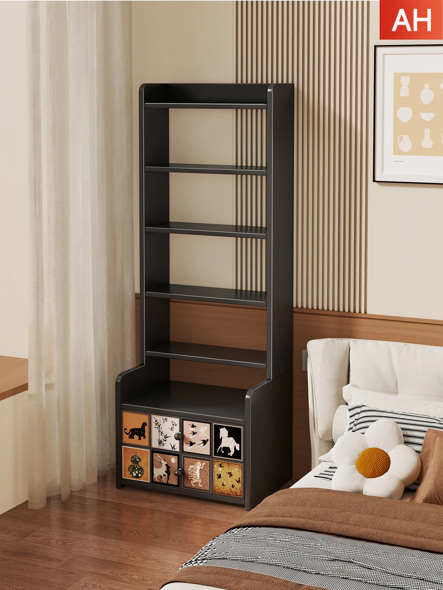 多機能ベッドサイドキャビネット - 高さを調整可能な収納力抜群の書棚一体型!おしゃれで便利なマルチ収納で、あなたの寝室をスッキリ整理整頓!