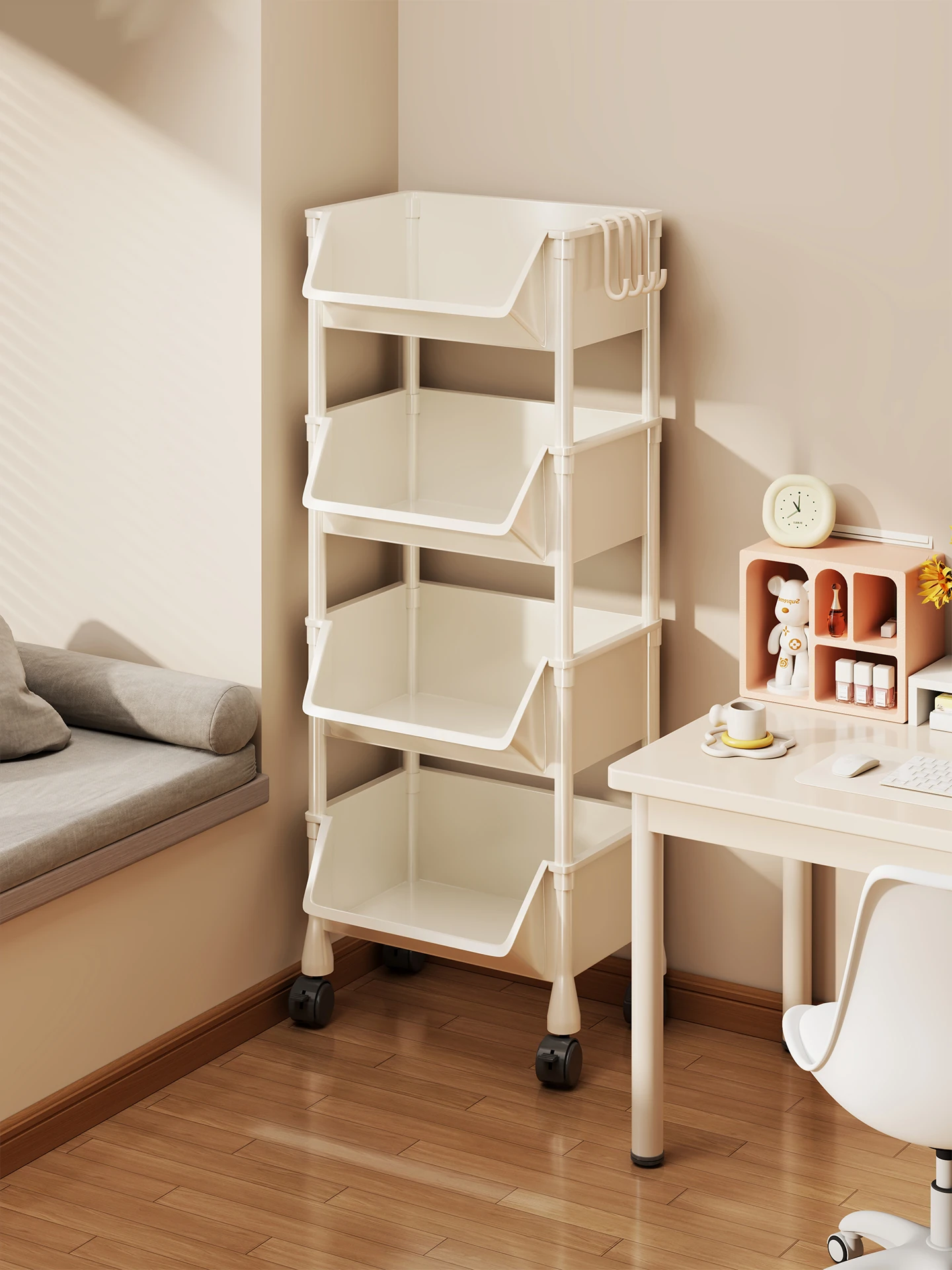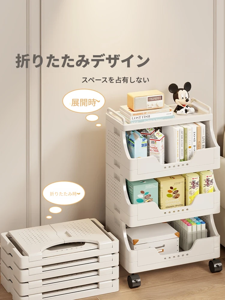 移動式収納ラック|家庭用・リビングに最適な多層スナックラック|テーブルサイドの本収納にもぴったり!キャスター付きの便利な小型ワゴンで、整理整頓を簡単に実現!
