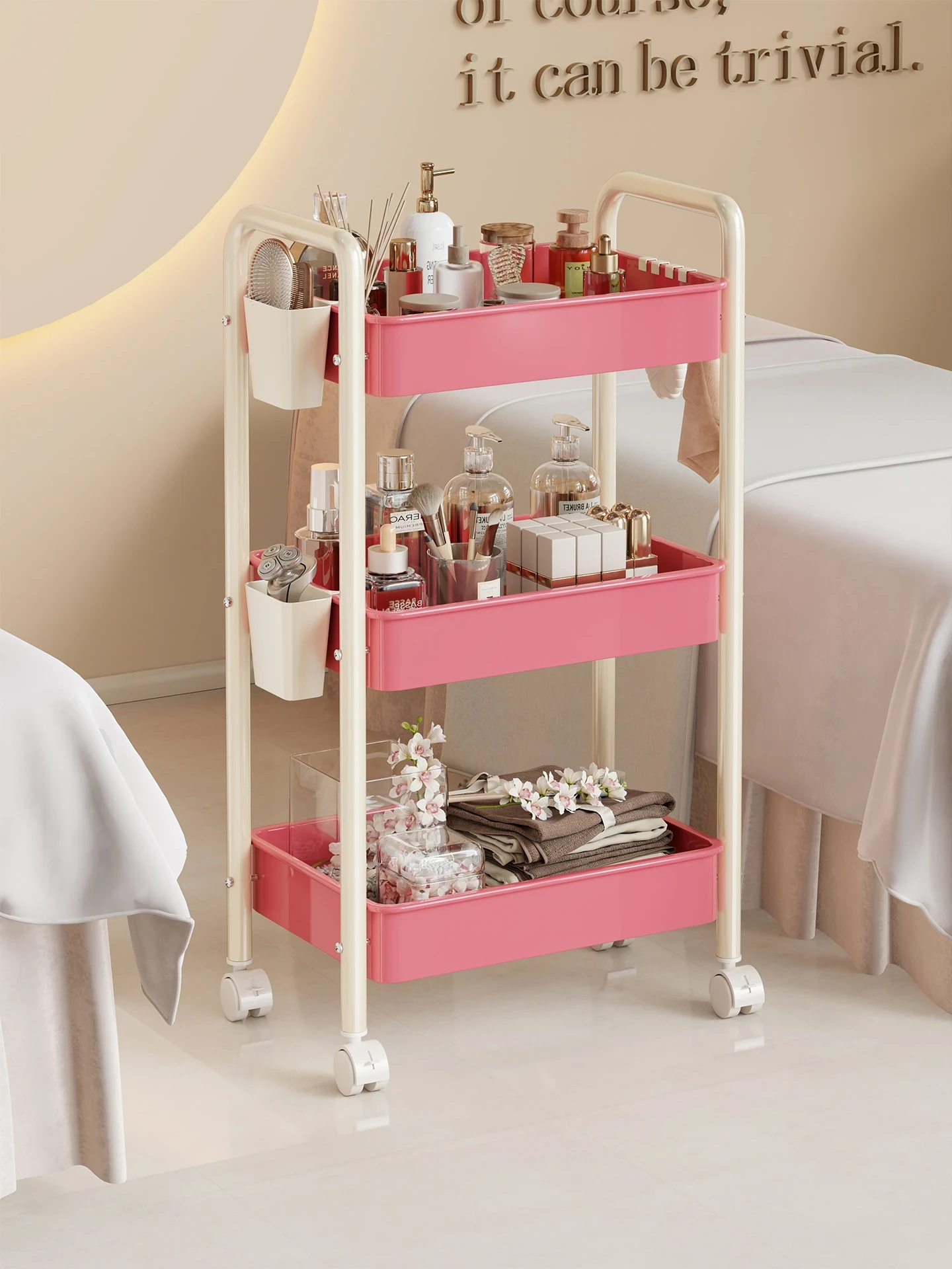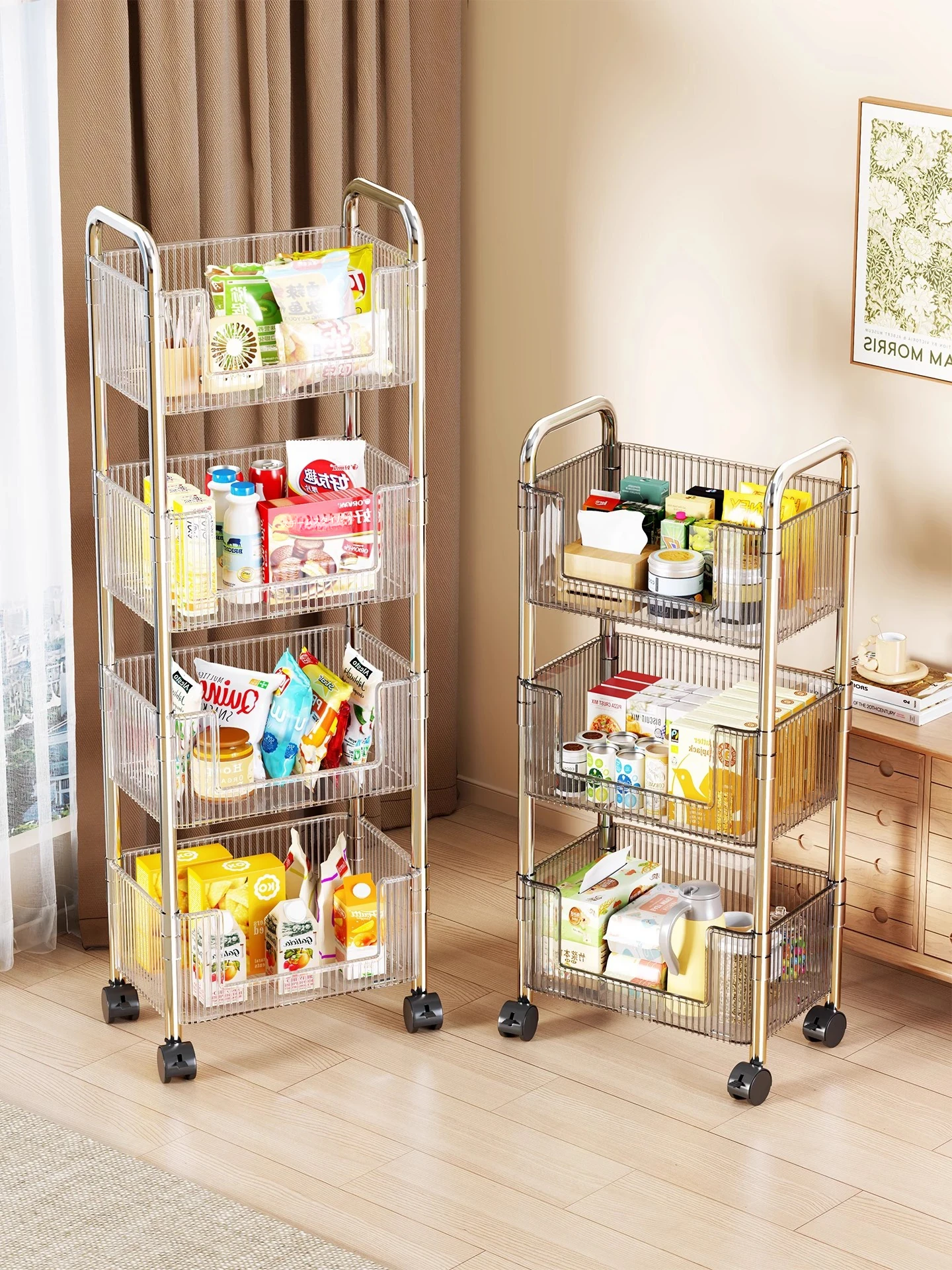 多機能キャスター付き収納ラック|家庭用・リビングに最適な多層お菓子・フルーツ収納|ソファ横にぴったりな移動式サイドテーブル!便利でスタイリッシュな収納ソリューション!
