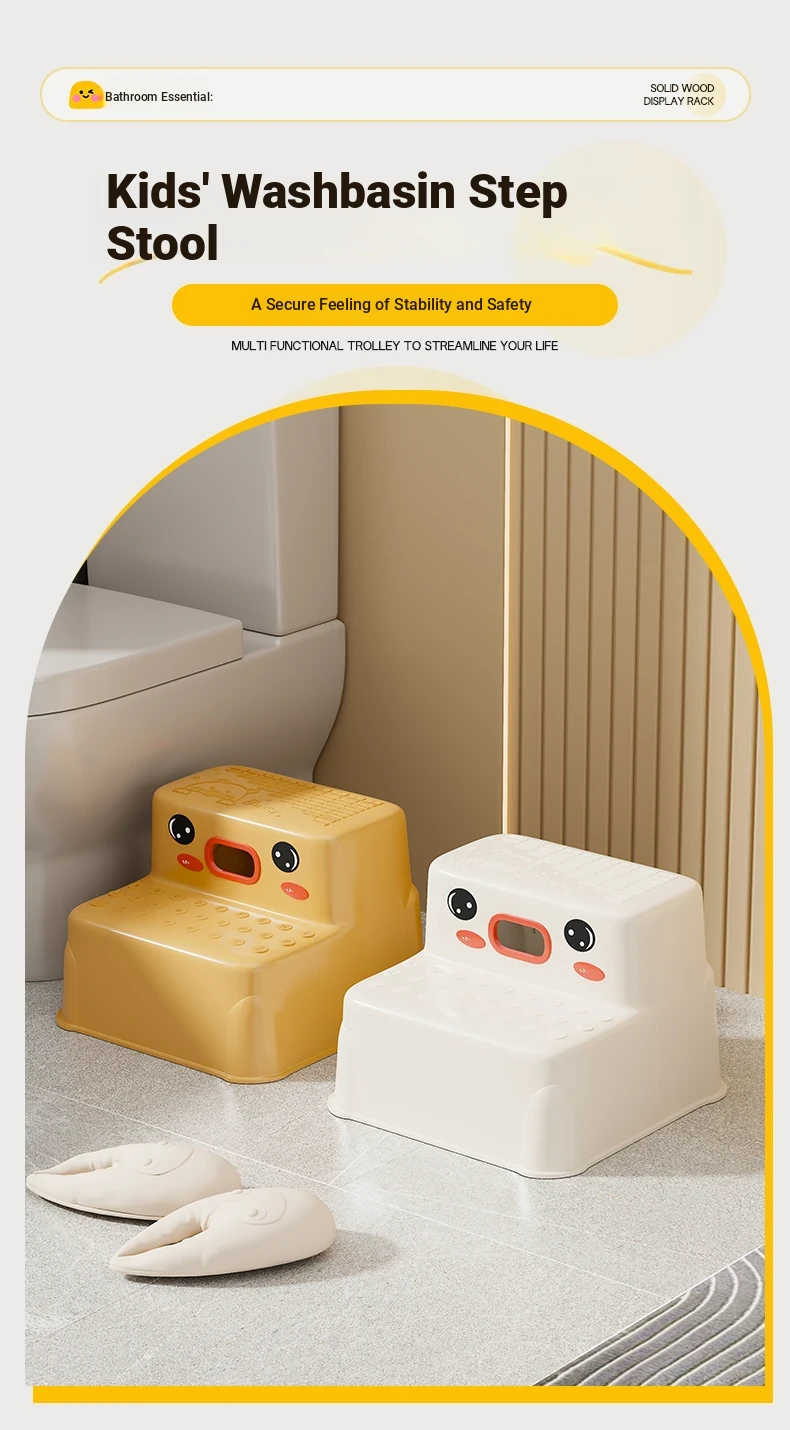Kids' Bathroom Step Stool - Adjustable Height Tread for Easy Tooth Brushing & Face Washing - Perfect for Toddlers to Reach Sink & Toilet Safely - Non-Slip Design for Added Safety