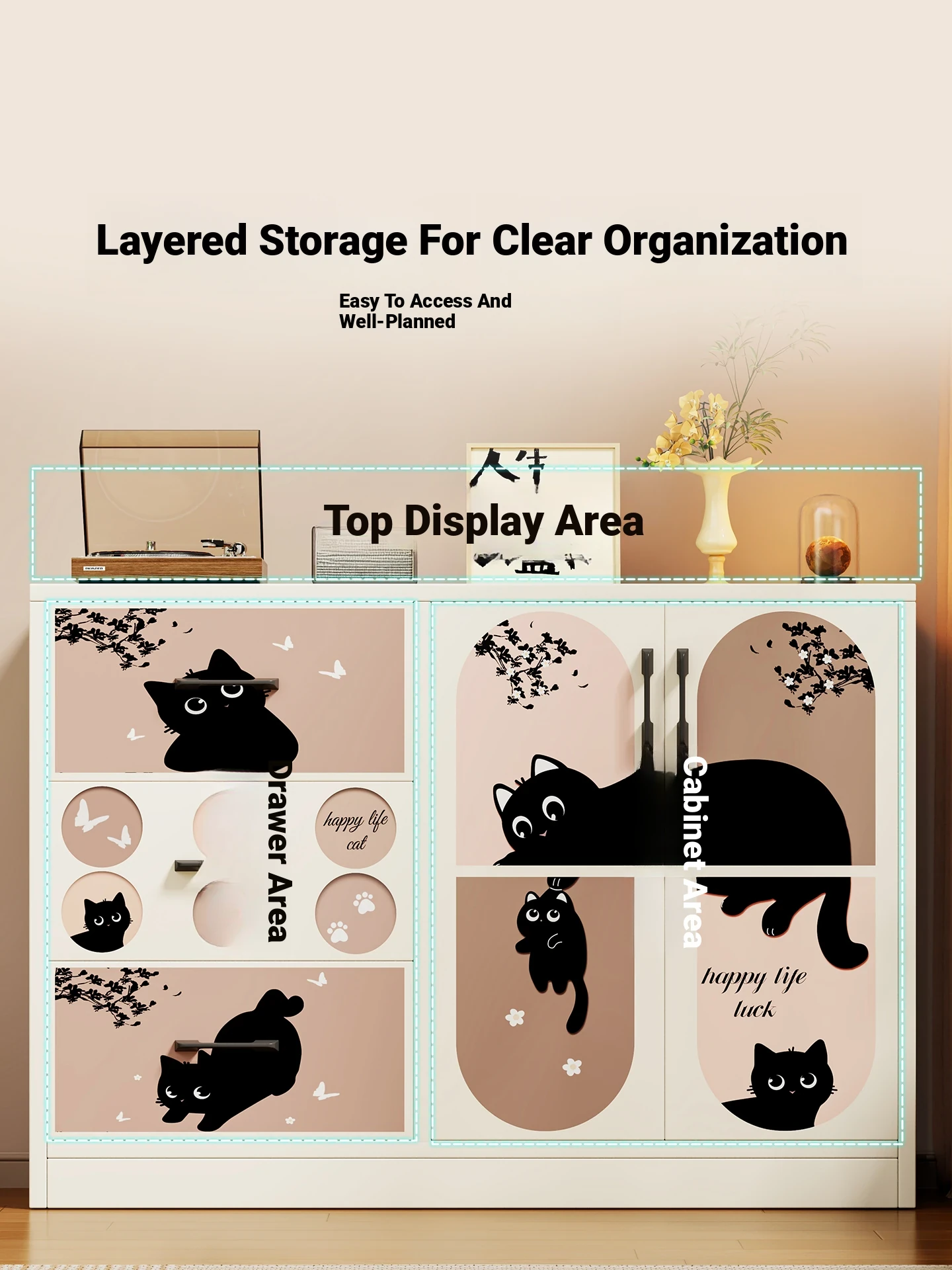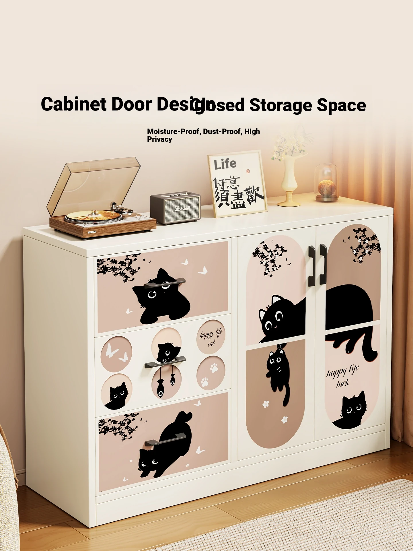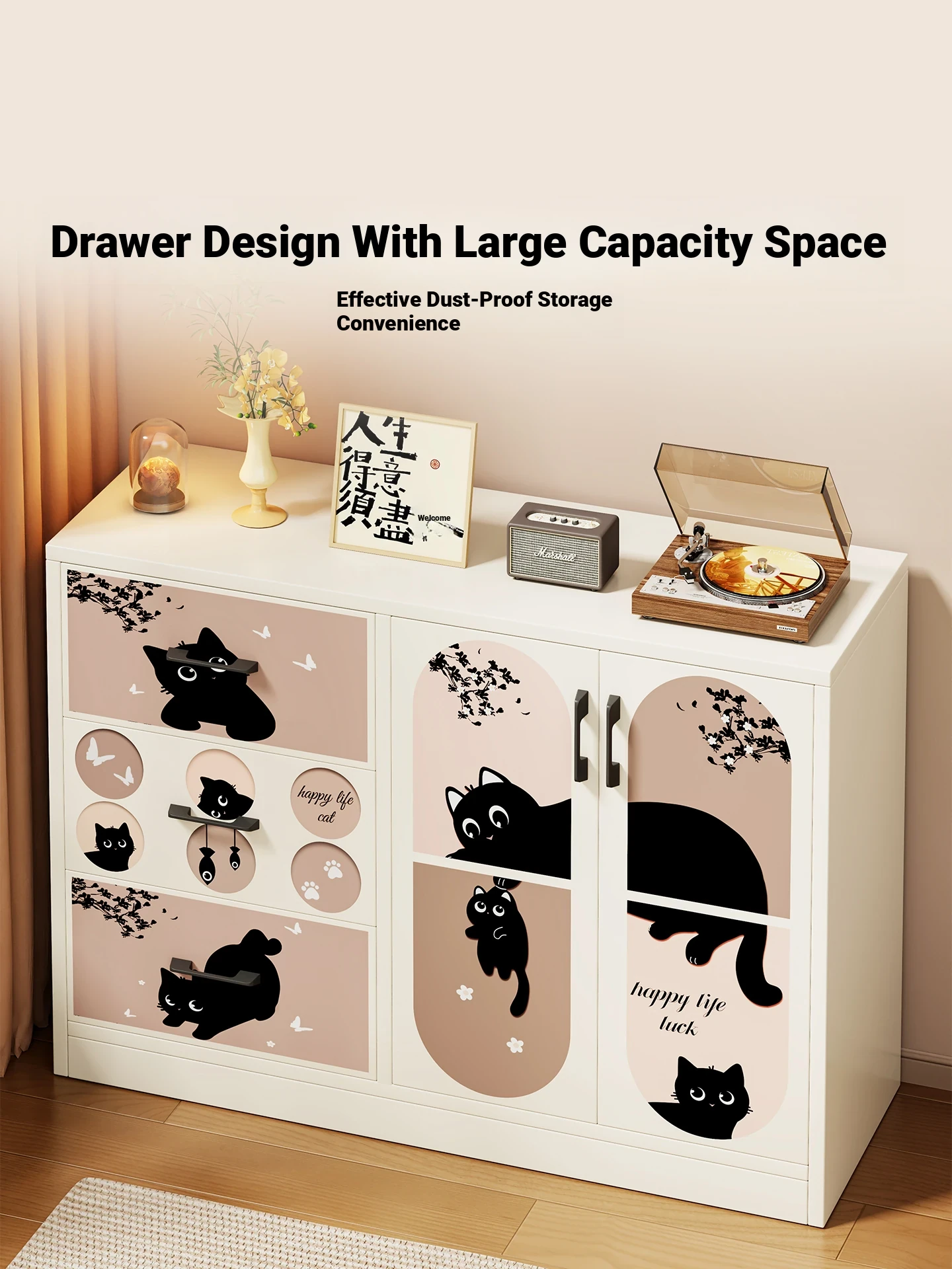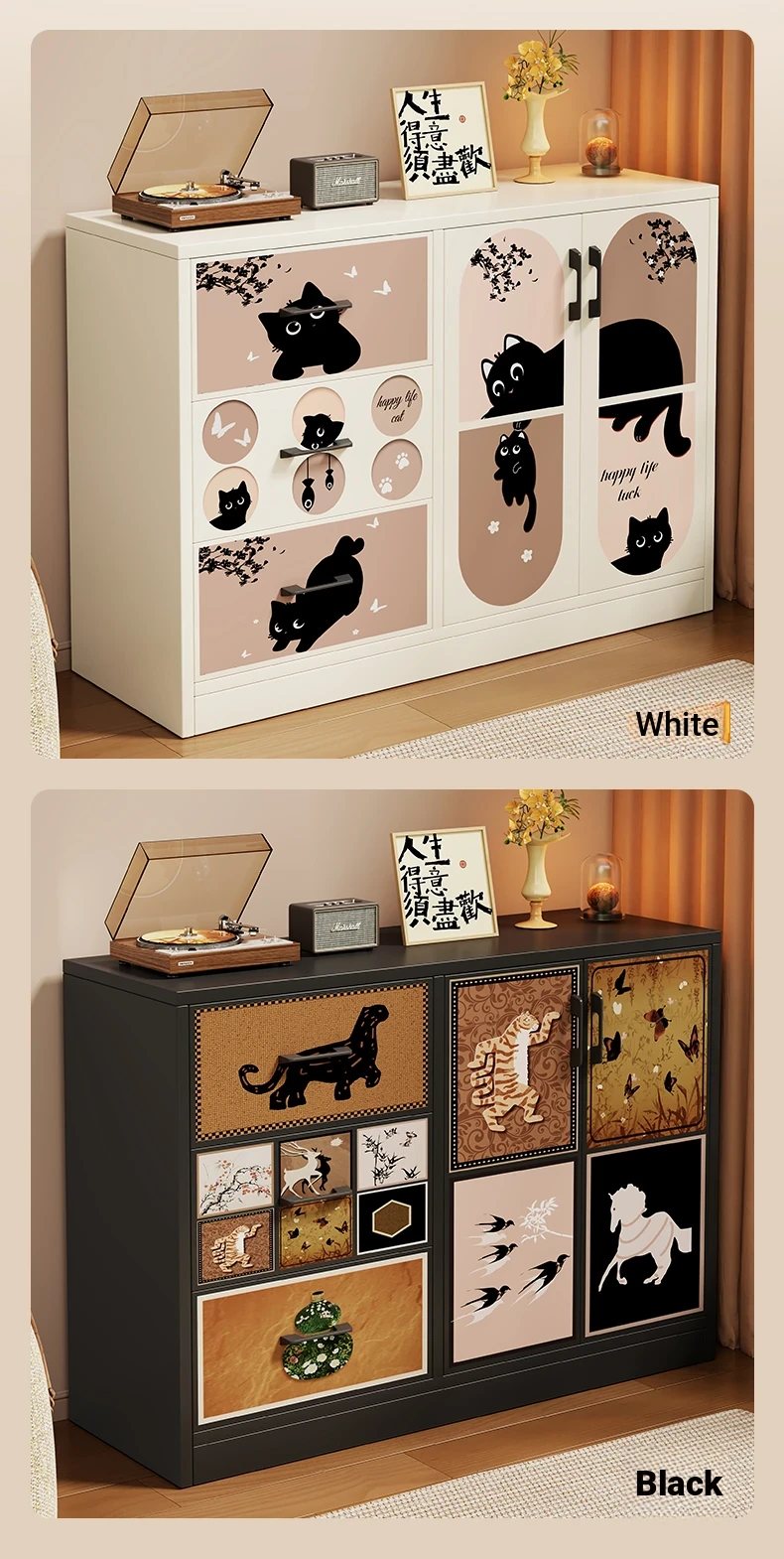 Retro Charm⭐Black [Double Door Three Drawers]