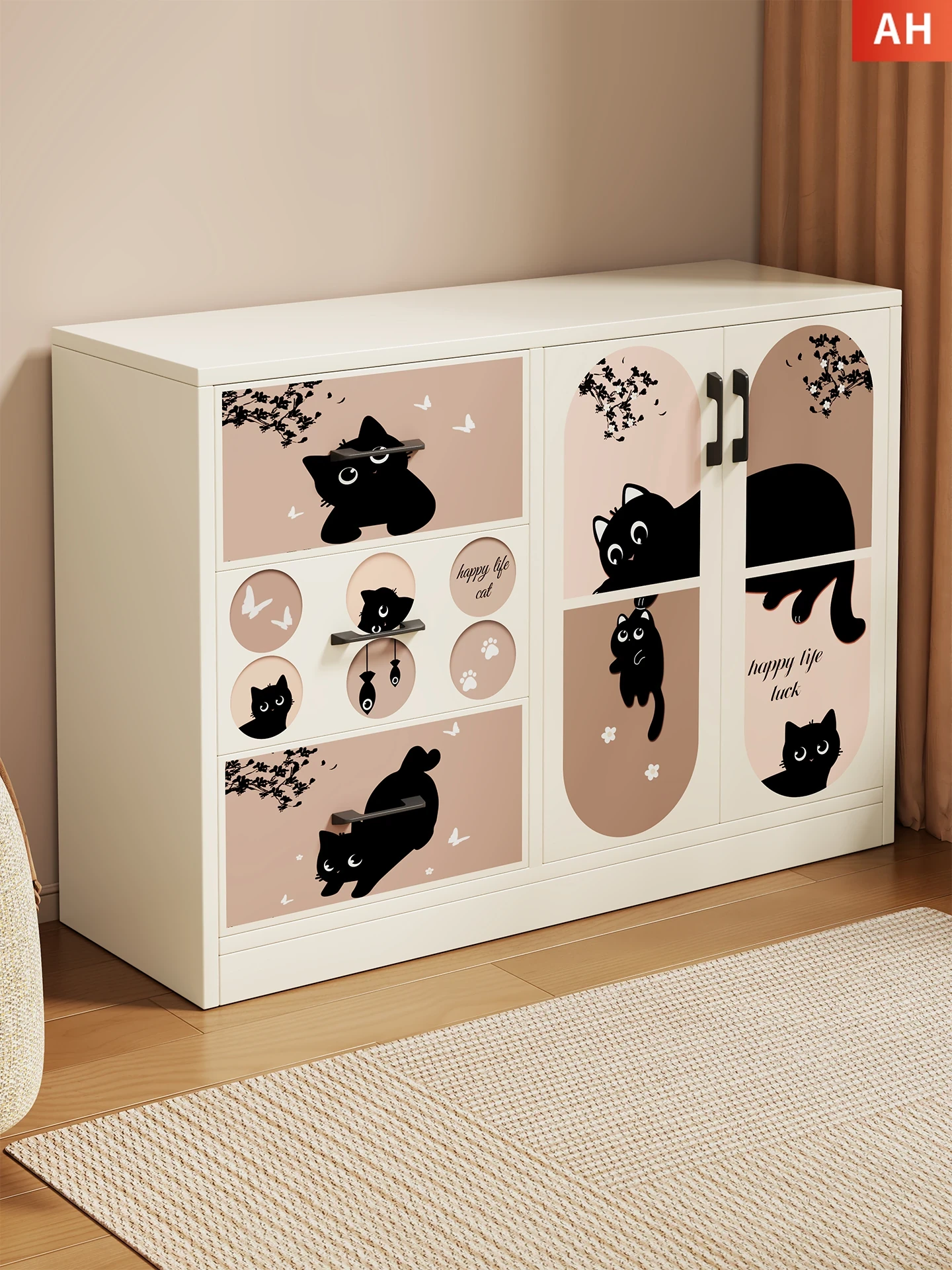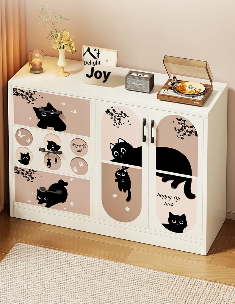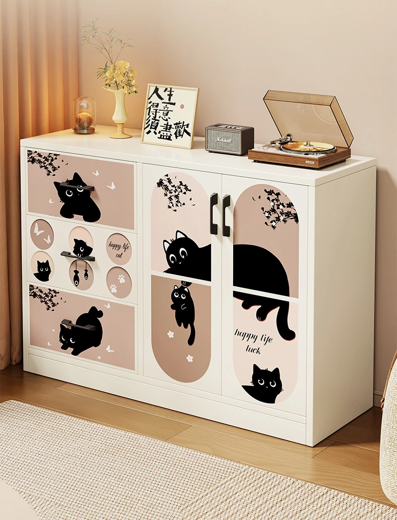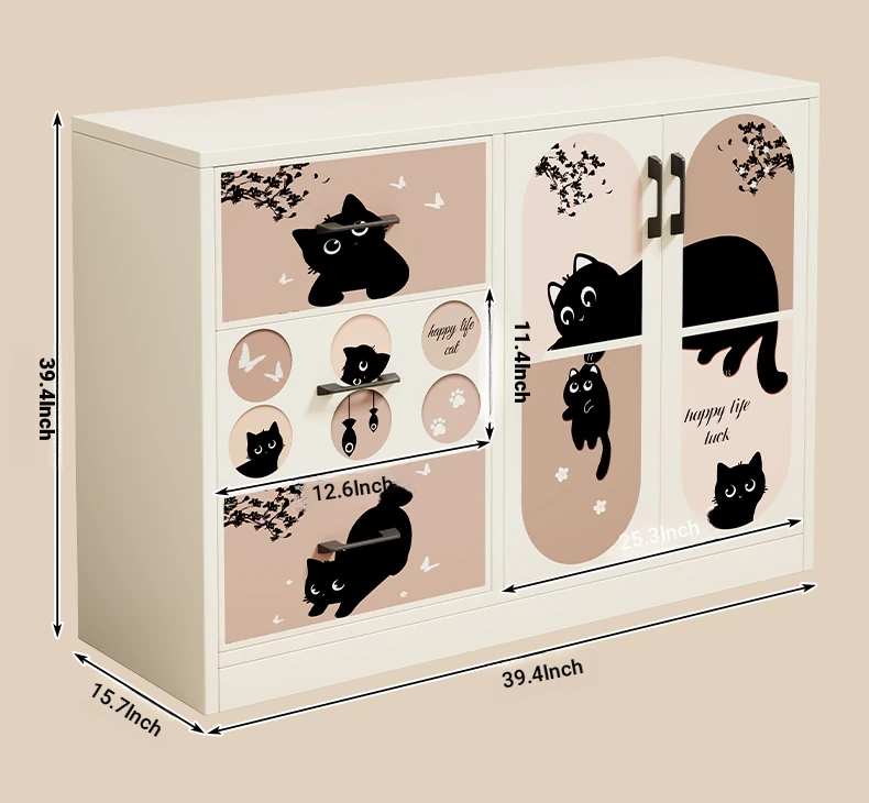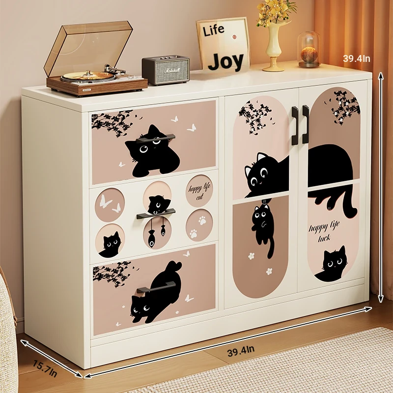 Retro Cute Cat ⭐ White [Double Door and Three Draws]