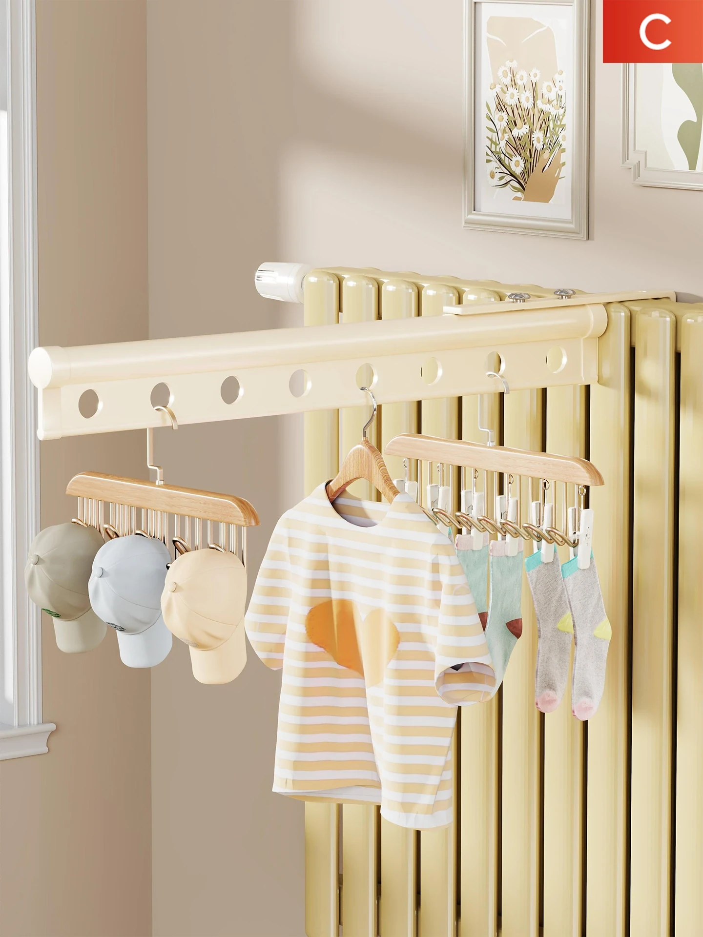 Radiator Clothes Drying Rack - Specialized Hooks for Hanging Laundry, Perfect for Home Use Above Radiator, Ideal Towel Hanging Solution, Space-Saving Design