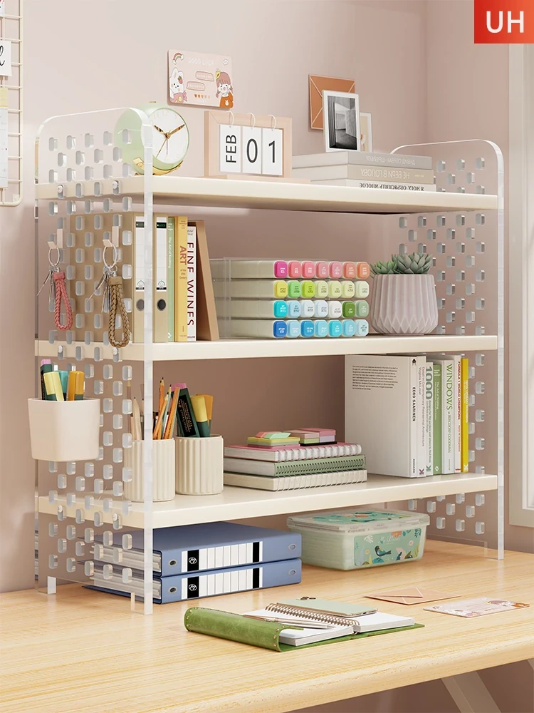 Multi-Functional Desktop Pegboard Organizer - Layered Storage Rack for Study and Office, No Drilling Required Bookshelf for Efficient Workspace Management