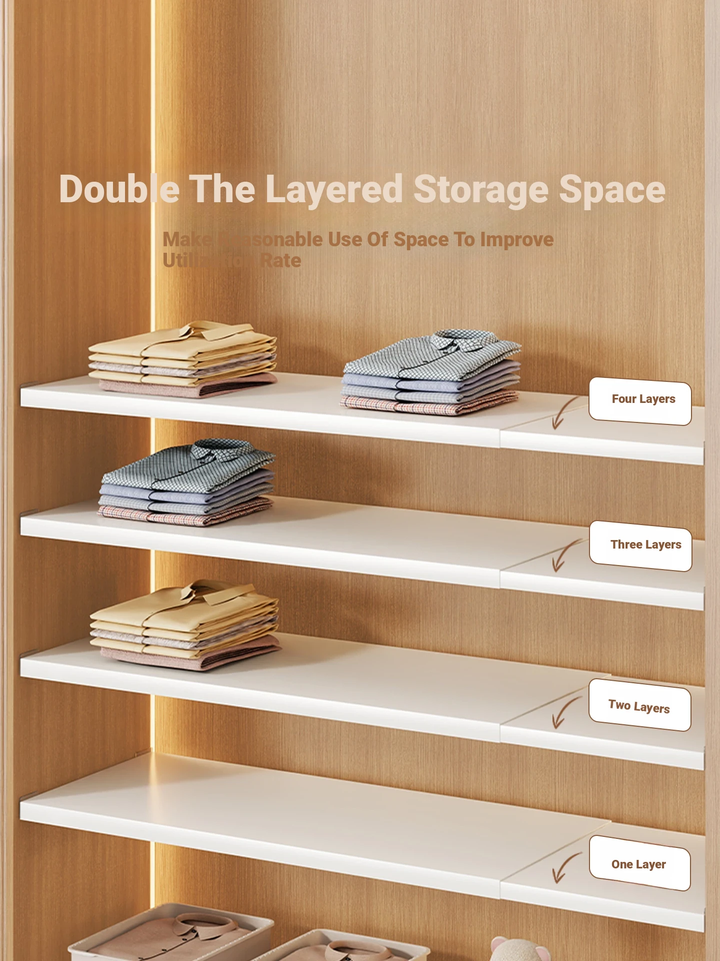 Adjustable Closet Shelf Organizer – Multi-Layer Shoe Rack and Storage Solution for Clothes – Perfect for Cabinet Use – Maximize Your Space with This Versatile Storage Essential!