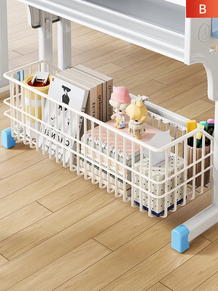 Multi-Functional Iron Hanging Basket for Student Desks - No Drill Book Bag Organizer with Hooks, Small Bookshelf for School Desks, Perfect for Easy Storage and Space-Saving Solutions!