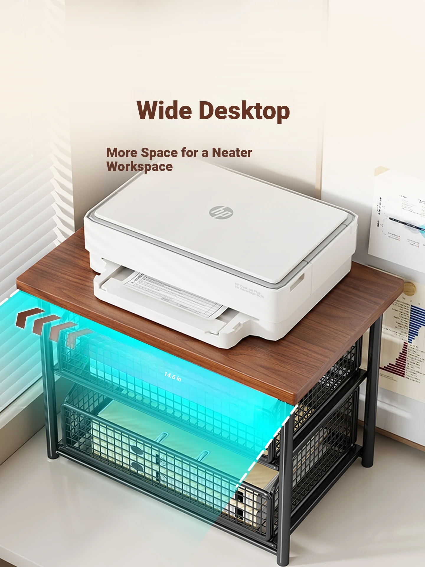 Compact Dual-Layer Desktop Printer Stand with Drawer - Essential Organizer for Office Workstations and Small Printers