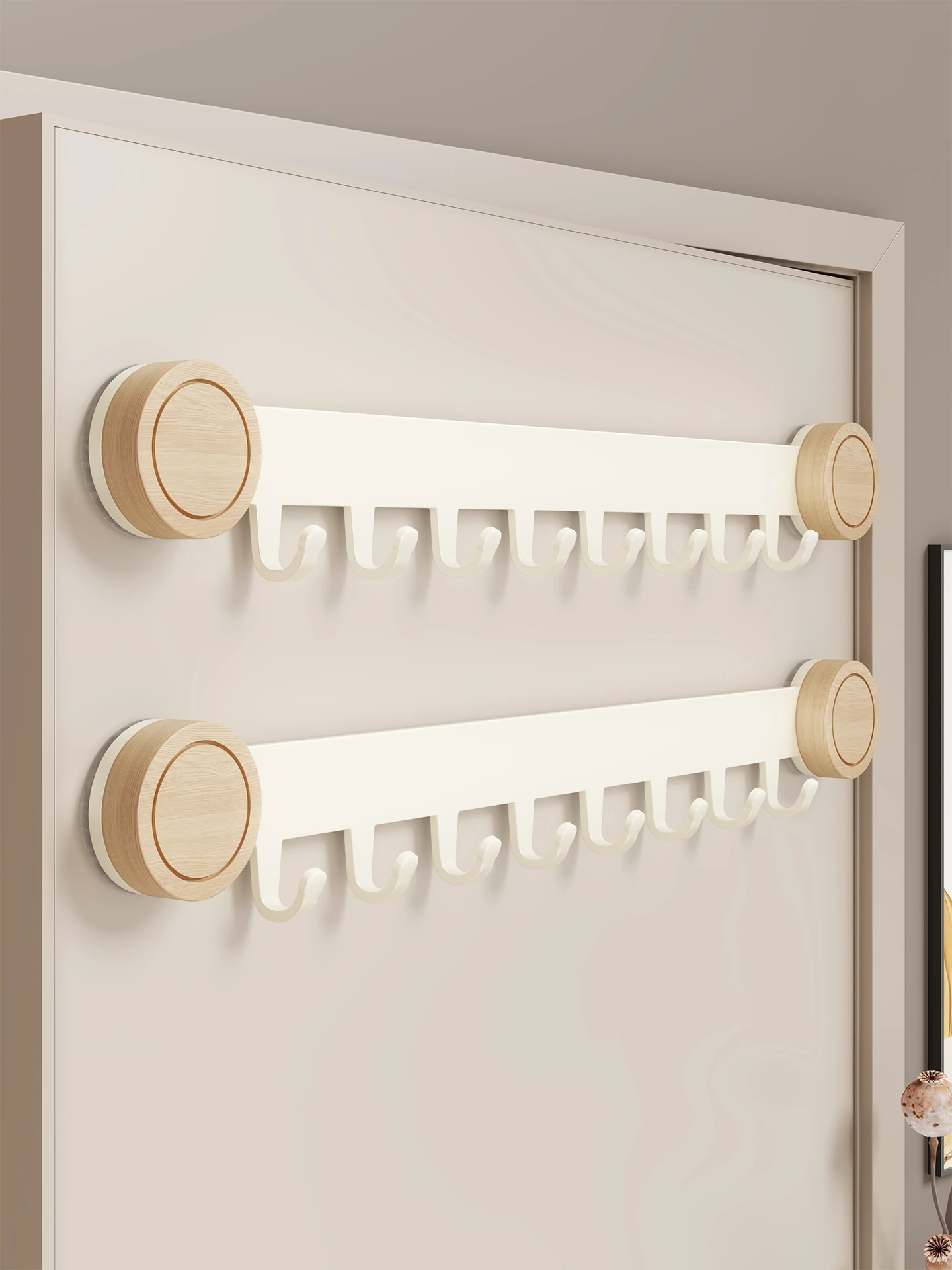 Solid Wood Wall-Mounted Hooks - No Drilling Required Storage Rack for Home Entryway - Perfect for Hats, Bags, and Coats Behind Doors