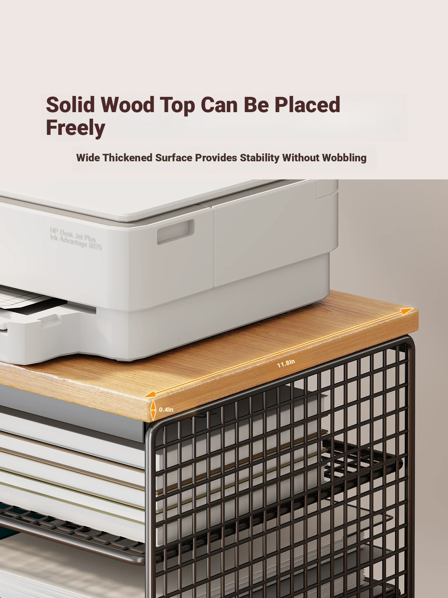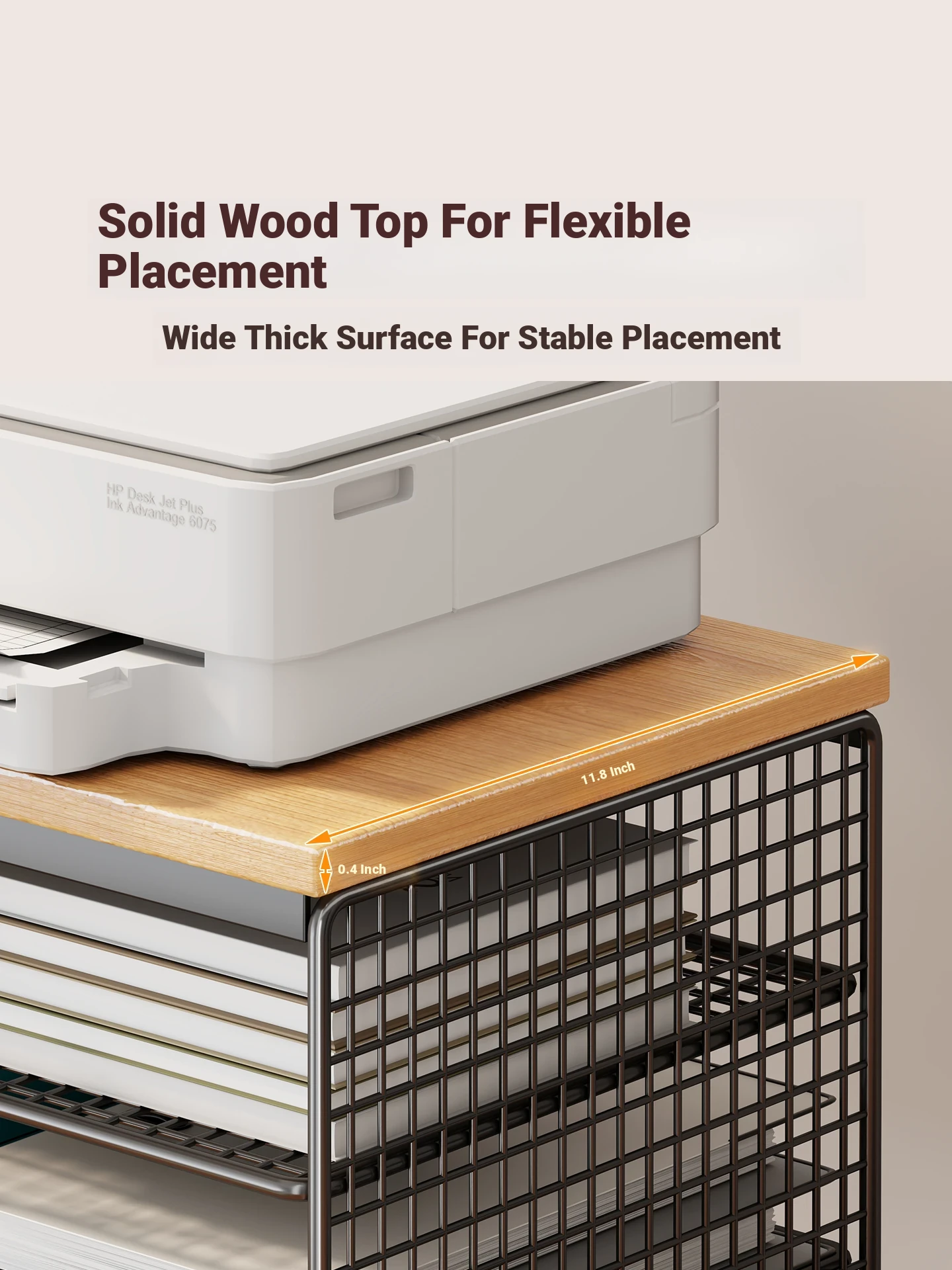 Multi-Tier Desktop Printer Stand with Wheels - Office Organizer for Files and Copier, Perfect for Your Workspace!