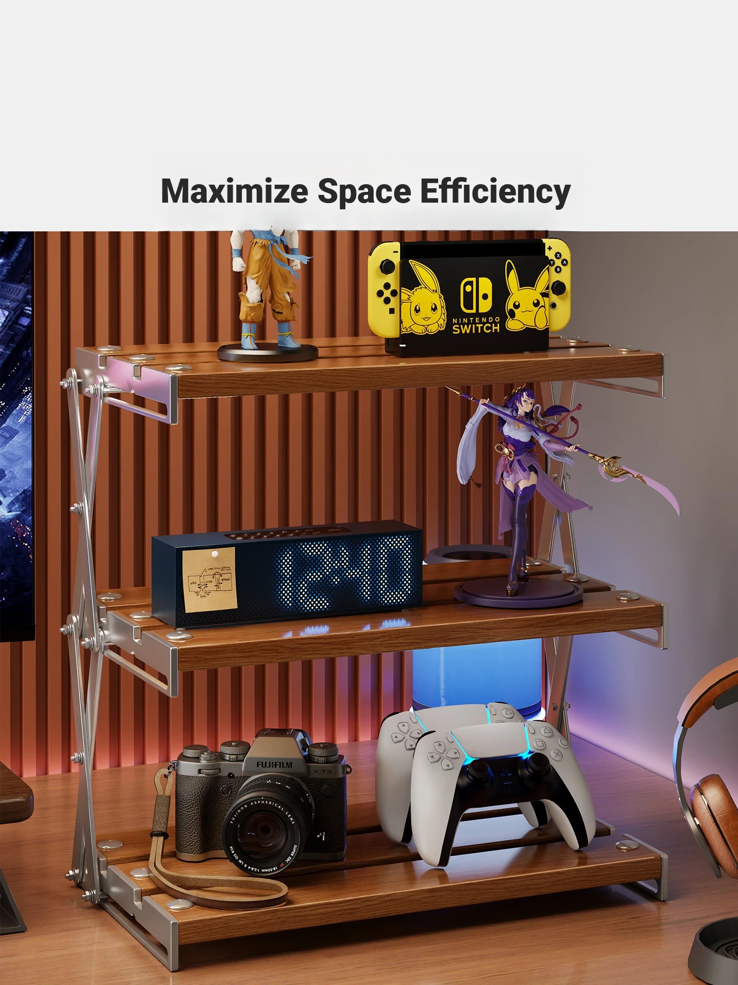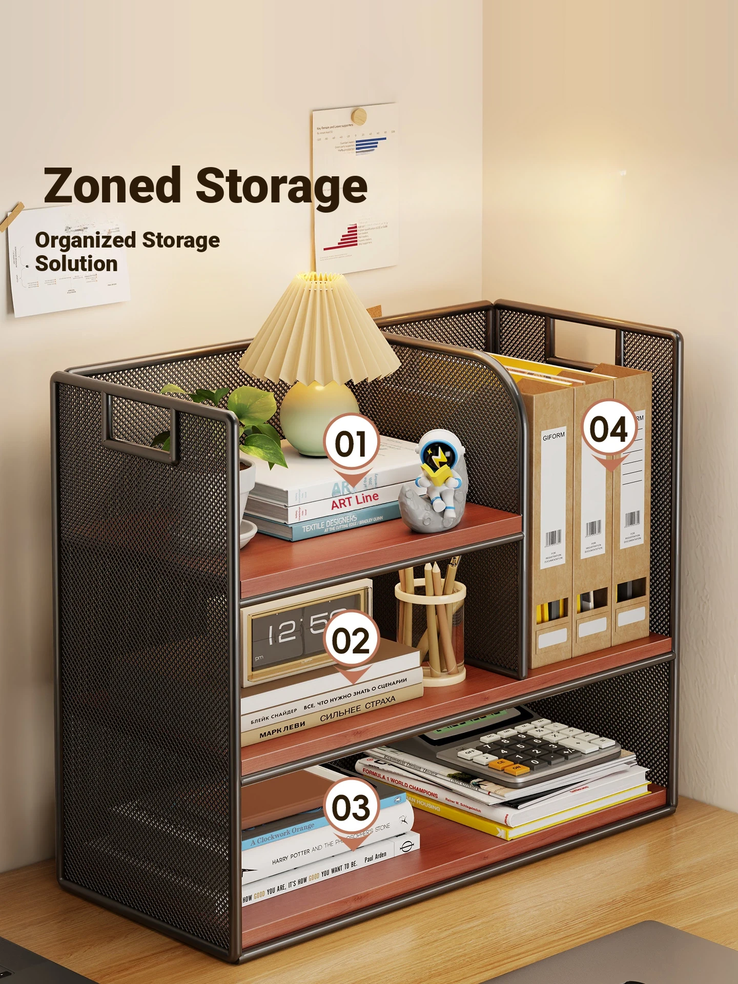 Multi-Tier Desk Organizer - Space-Saving Bookshelf for Student Dorms and Offices, Large Capacity Storage Rack for Desktop Clutter Management