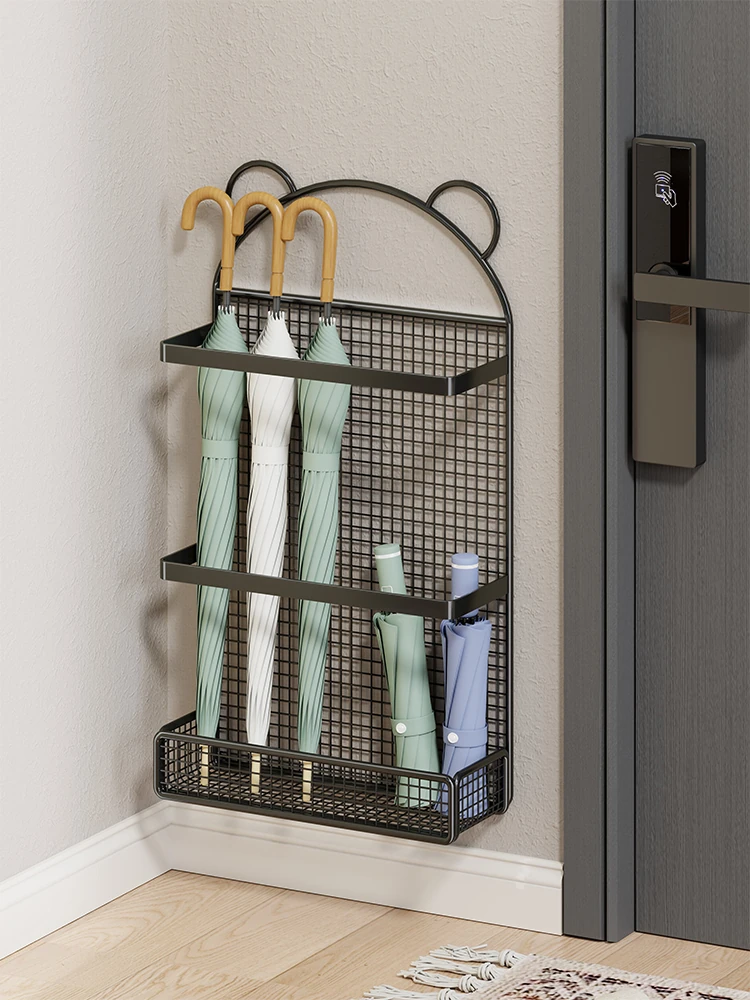 No-Drill Umbrella Storage Rack - Wall-Mounted Drip Tray for Home Use, Perfect for Organizing Umbrellas in Commercial Lobbies and Entryways. Keep Your Space Neat and Dry!