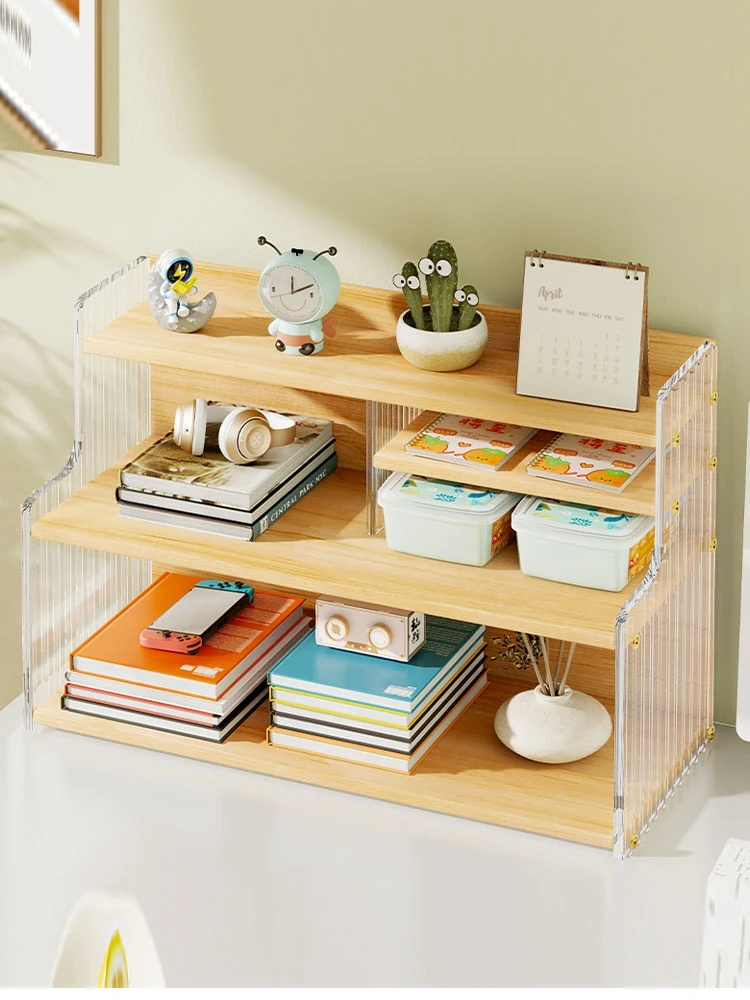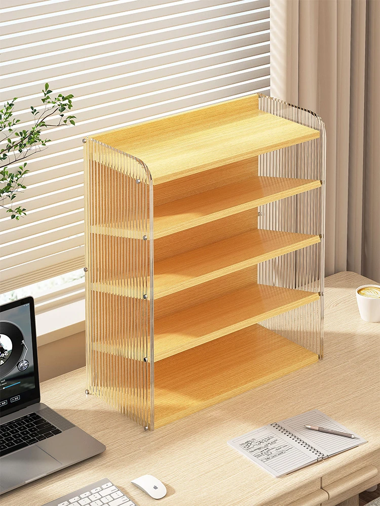 Solid Wood Desktop Bookshelf - Multi-Layer Storage Rack for Desktop, Ideal for Organizing Books and Essentials on Your Desk, Space-Saving Small Book Cabinet