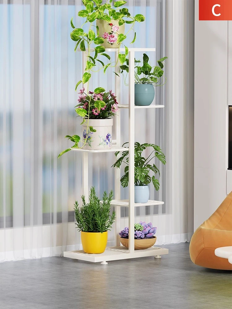 Stylish Iron Multi-Layer Plant Stand for Living Room and Balcony - Perfect Storage Solution for Succulent Pots and Home Organization