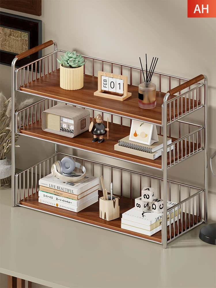Vintage-style Desktop Storage Rack - Multi-layer Books Organizer for Desk, Dining Table Snack Shelf, Coffee Table Cup Holder, and Home Organization Solution