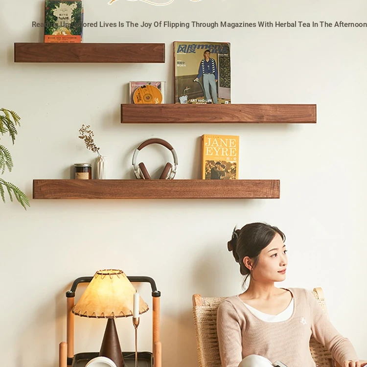 Solid Wood Wall Shelf - Stylish Wall-Mounted Display Rack for TV and Décor, Nordic-Inspired Storage Solution for Tea Houses and Modern Spaces