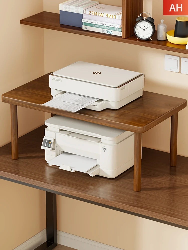 Solid Wood Printer Stand - Dual-Layer Desktop Monitor Riser for Computers and Office Organization - Elevate Your Workspace with Style and Functionality