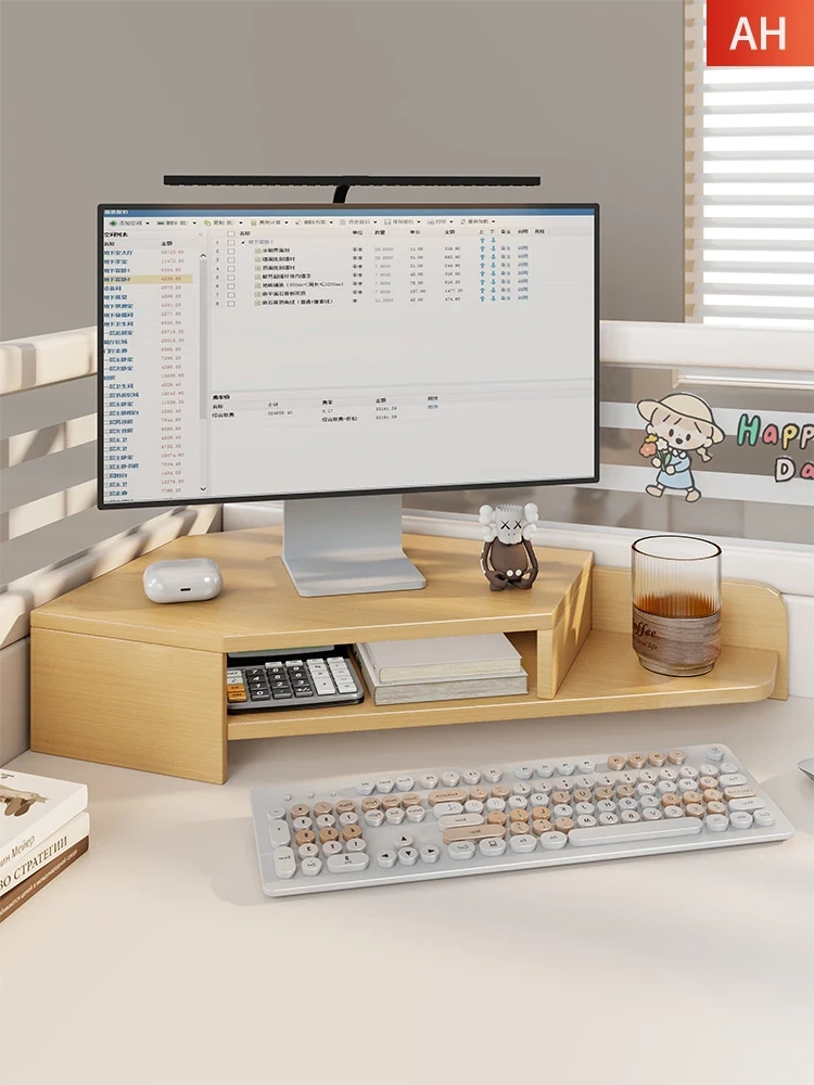 Corner Computer Monitor Stand - Adjustable Height Triangular Office Desk Organizer for Enhanced Workspace Efficiency and Comfort