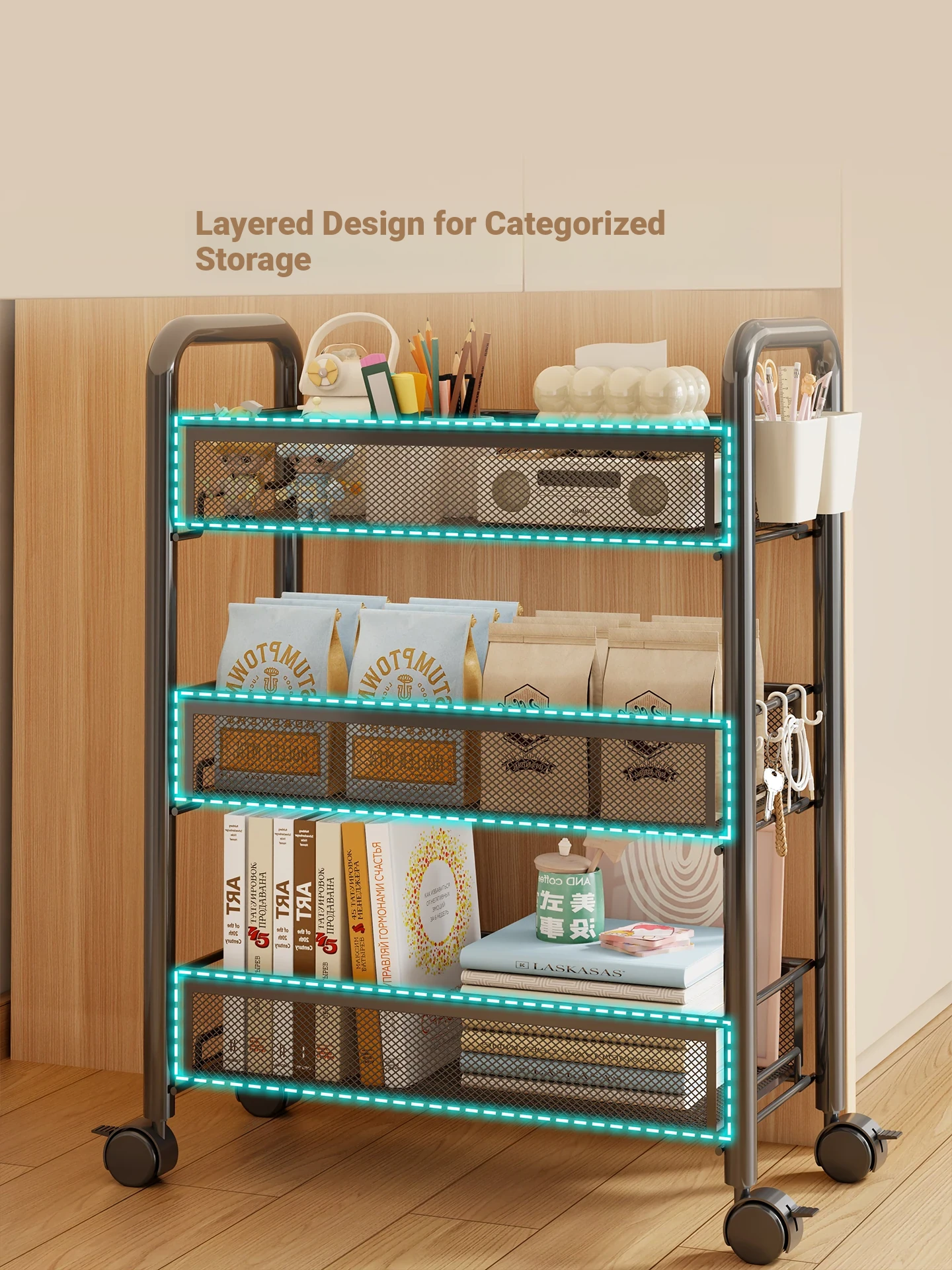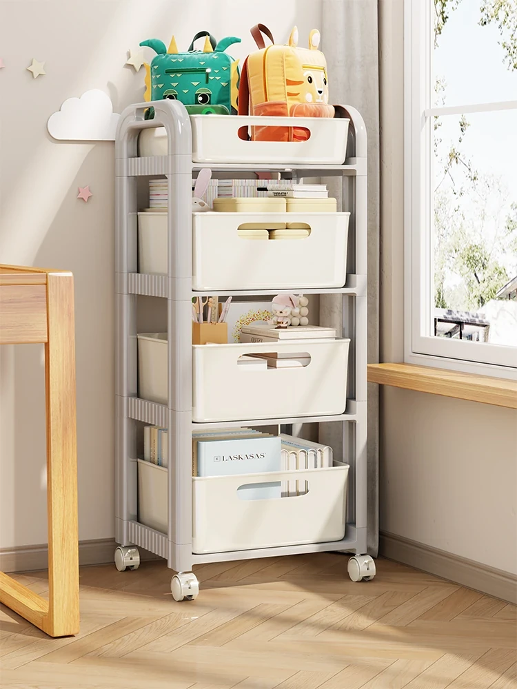 Multifunctional Rolling Cart with Wheels – Space-Saving Snack Storage Cabinet for Dorms and Bedrooms, Versatile Multi-Layer Floor Bookshelf for Small Spaces