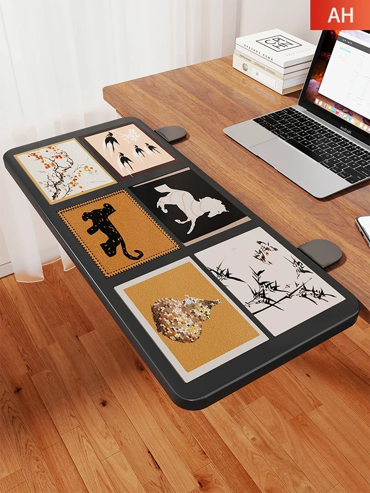 Foldable Desktop Extension Board with Keyboard Tray - No Drill, Expandable Storage Rack with Side Arm Support for Computers