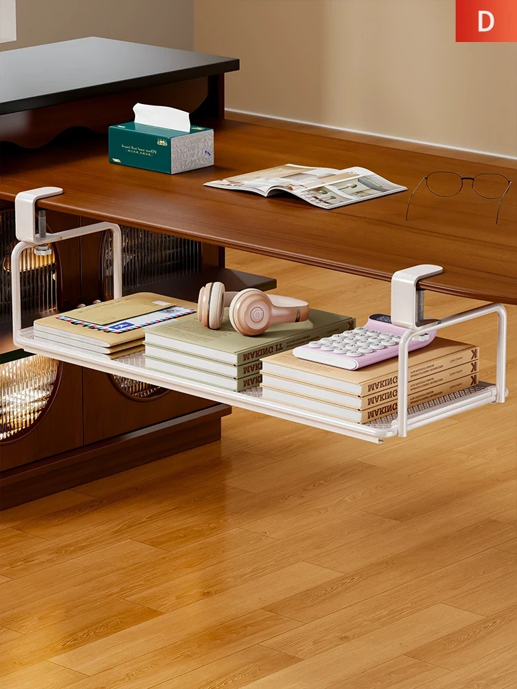 Under-Desk Storage Shelf - Adjustable Hanging Wardrobe Organizer, Multi-Layer Storage Rack for Efficient Desktop Organization, Space-Saving Solution for Home and Office