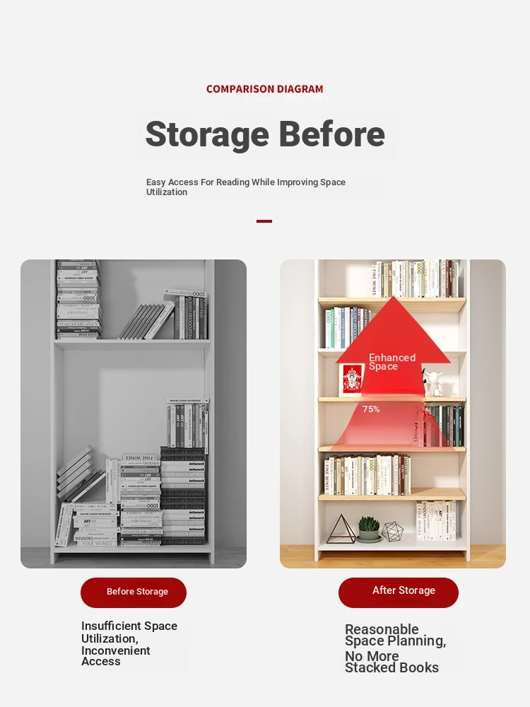 Multifunctional Floor-standing Bookshelf - Adjustable Storage Cabinet for Living Room and Bedroom, Wall-mounted Design for Space-saving Organization