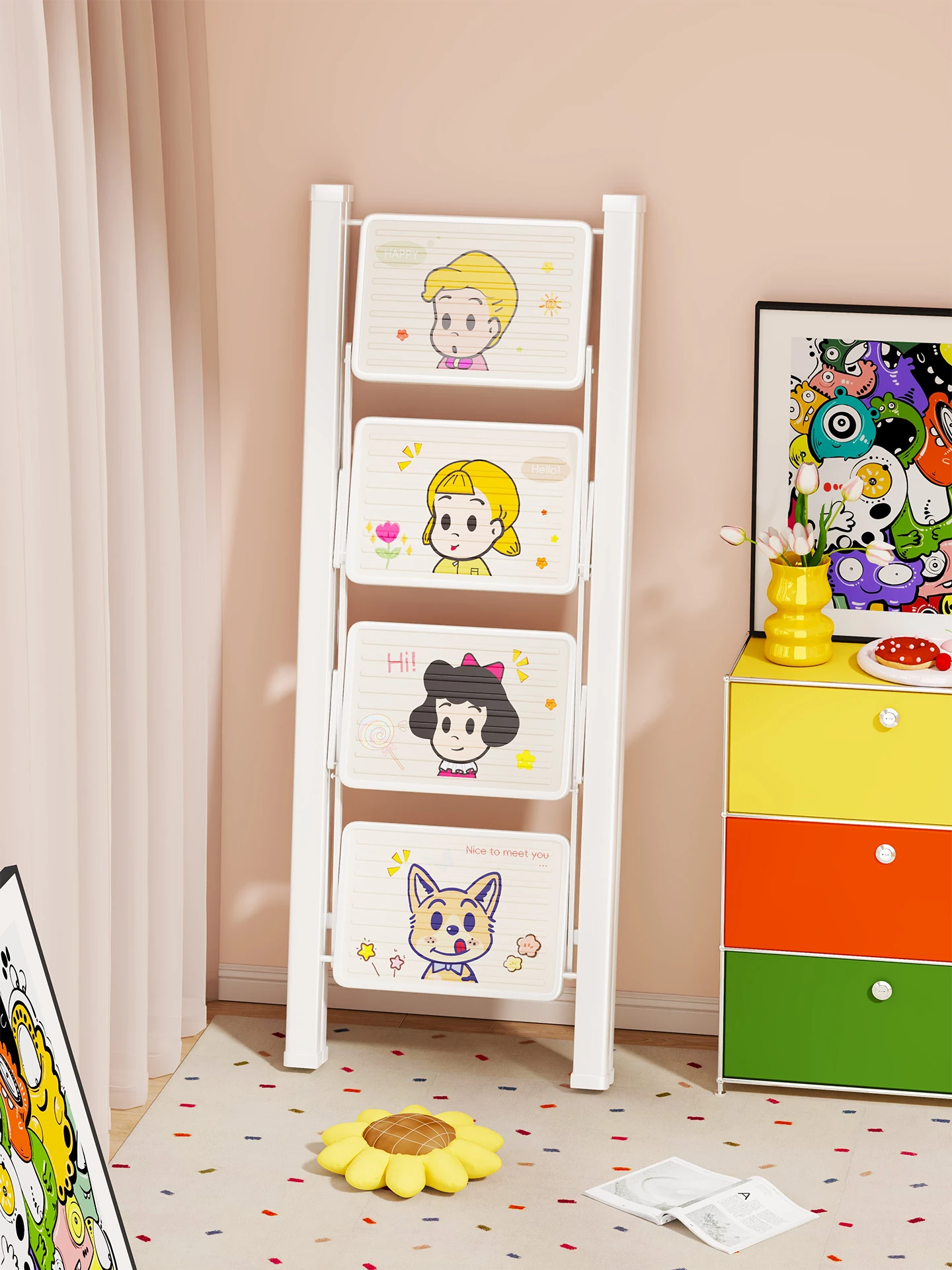 Children's Reading Bookshelf - Multi-Tiered Storage Rack for Living Room, Perfect for Picture Books and Toys, Mobile and Pull-Out Design for Books, Magazines, and Storage Bins. Ideal for Organizing Your Child's Reading Space!