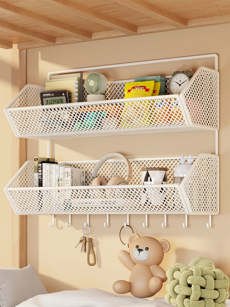 壁掛け収納ラック - 簡単取り付けで穴あけ不要!寝室や寮に最適な多機能収納バスケット。おしゃれで便利な壁面収納で、スペースを有効活用しましょう!