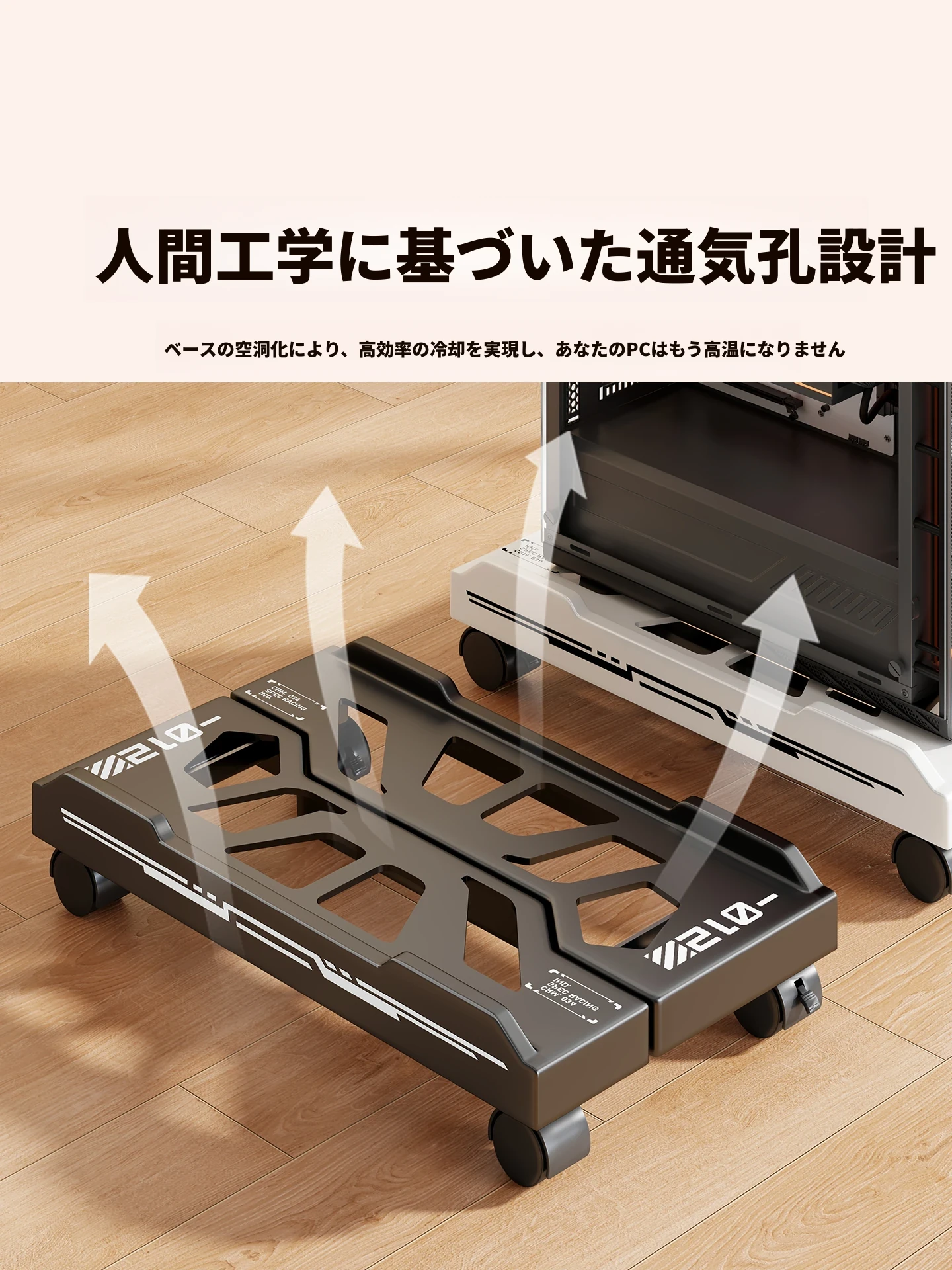 ゲーミングPC用モバイルスタンド - キャスター付きデスクトップケースホルダー、便利な収納ラックベースで、快適なゲーミング環境を実現!