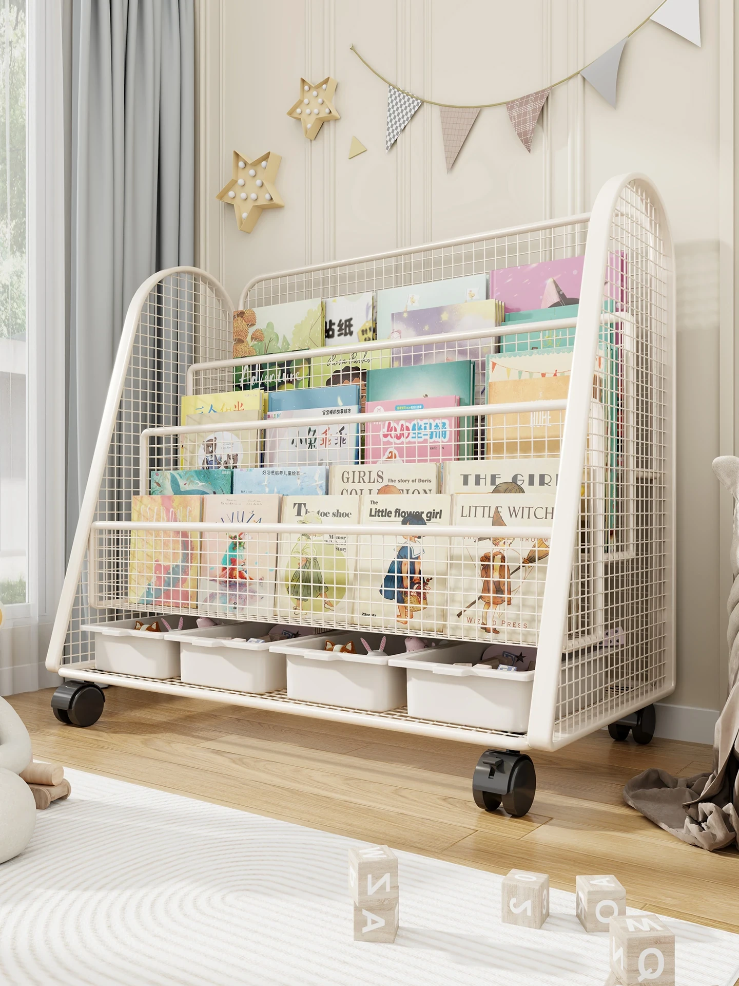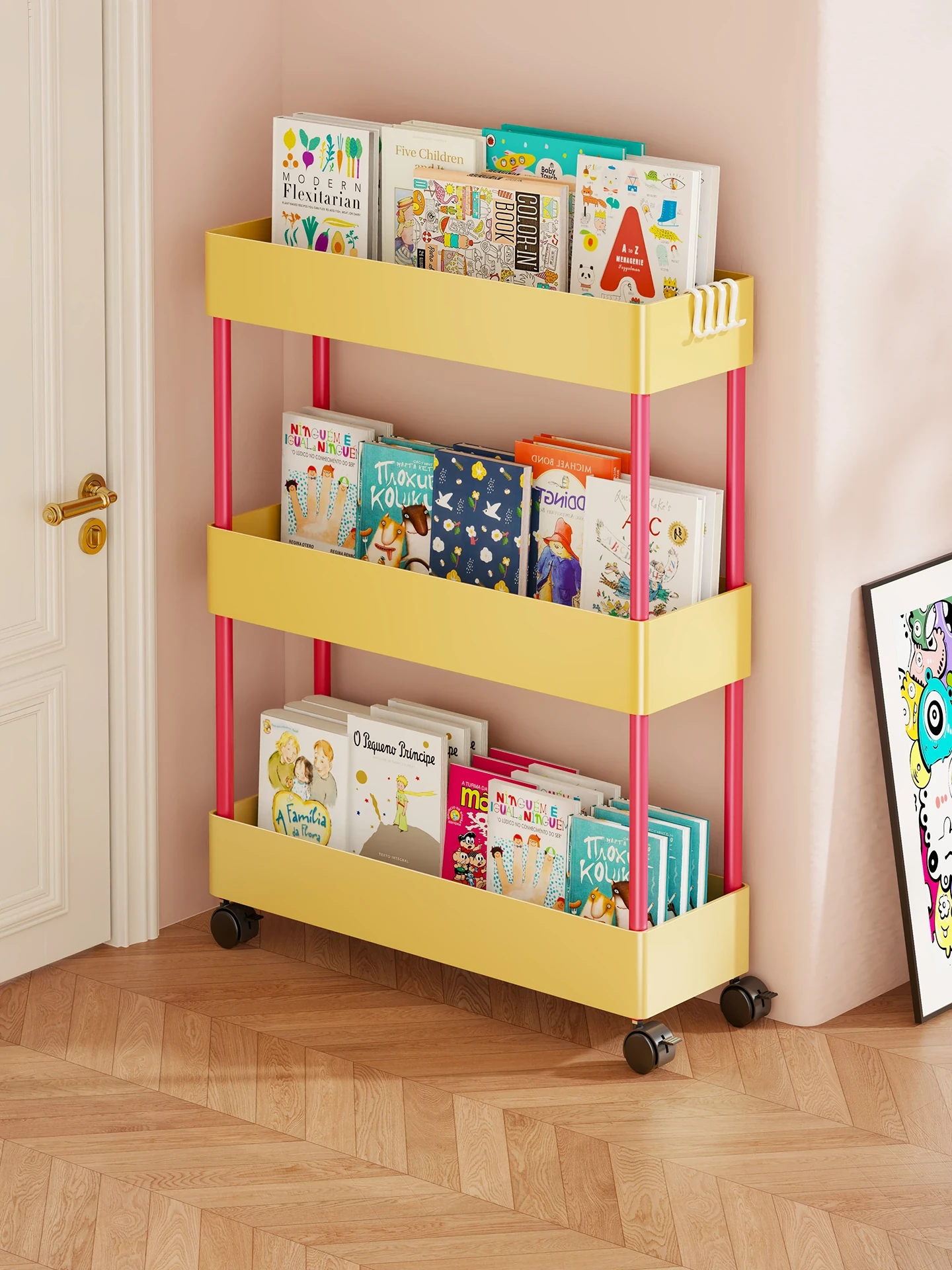学校用絵本ラック 子供向け本棚 家庭読書スペースに最適!階層式おもちゃ収納ラック 移動可能な収納棚 簡単に組み立てられる本棚で、お子様の読書習慣を育てよう!