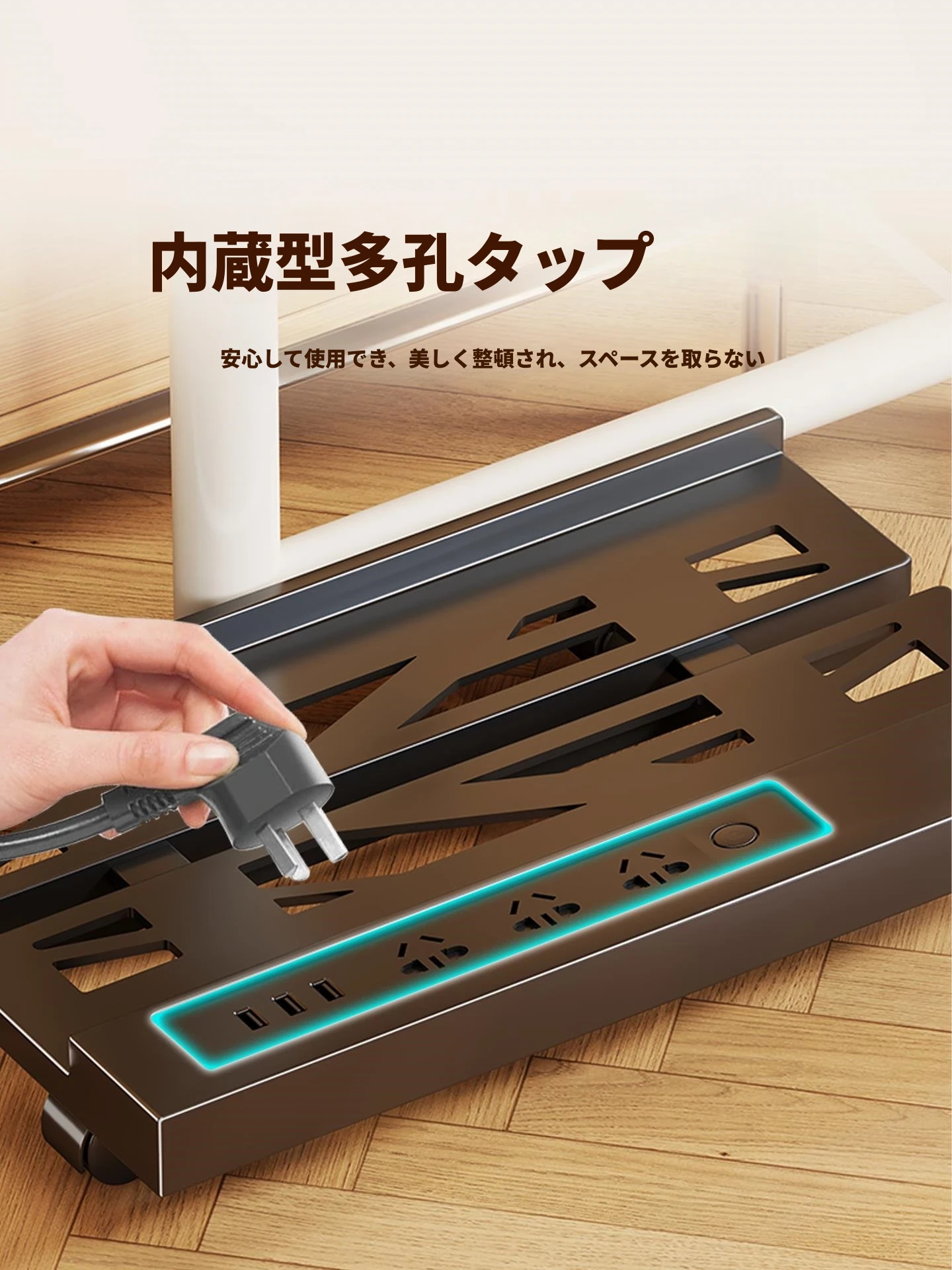 オフィス用デスクトップPC用昇降スタンド - 移動可能な電源タップ付き収納ラック、デスク下に最適なスペース活用!