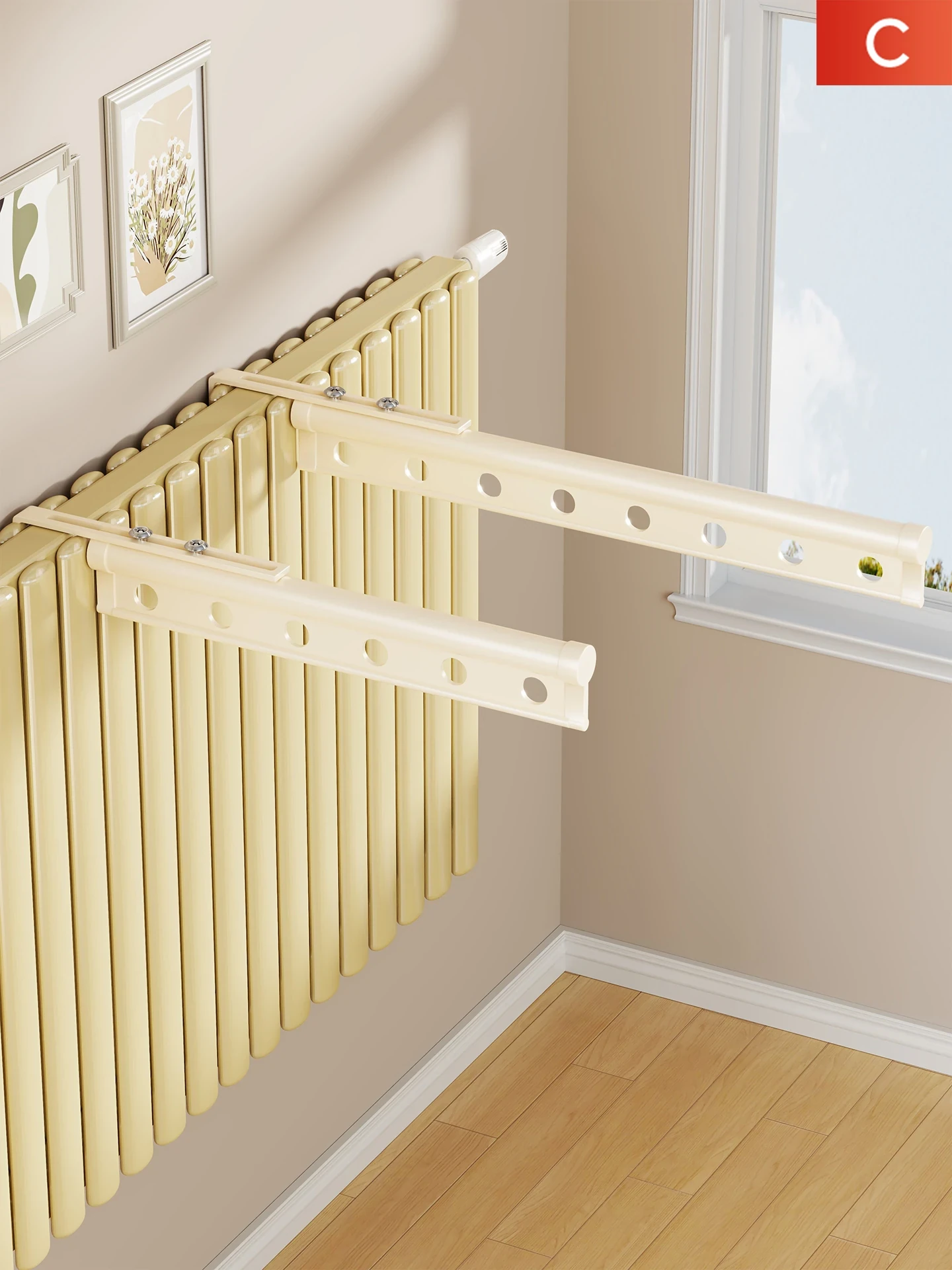 暖房用衣類干し専用の便利なハンガー!伸縮可能なタオルラック付きで、暖房パイプの上に取り付けられ、スペースを有効活用!あなたの洗濯物を素早く乾かし、部屋をスッキリさせます!