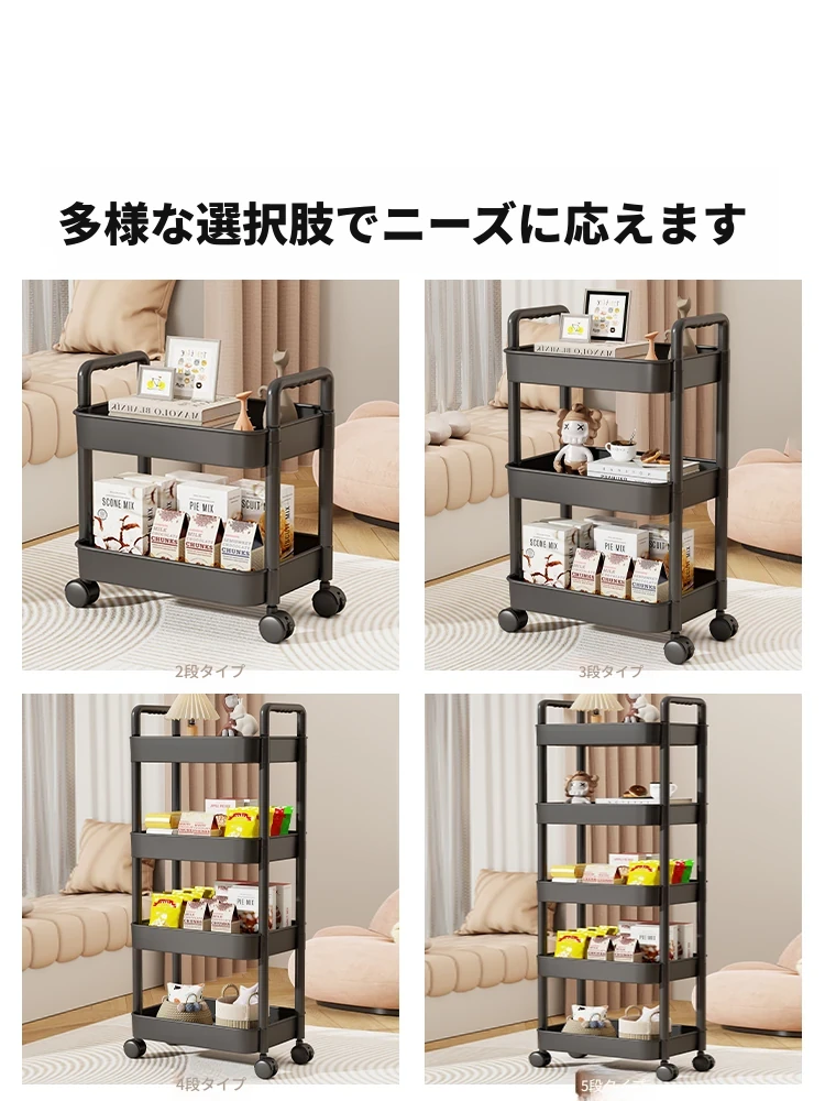リビングルーム用移動式サイドテーブル!多層スナック収納ラック付き、キャスター付きの便利な小型ワゴンで、寝室や家庭での使い勝手抜群。おしゃれで実用的な収納ソリューション!
