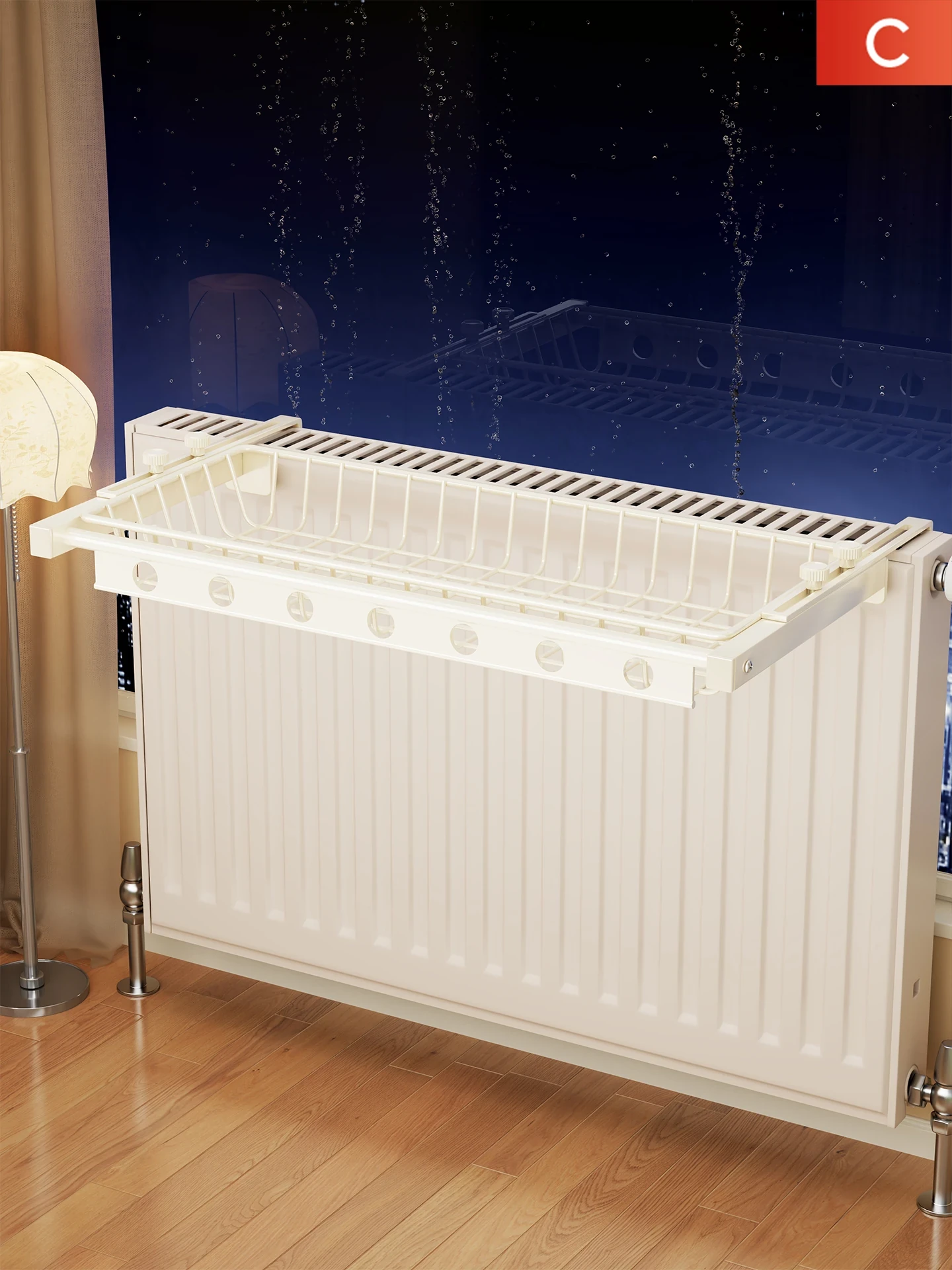 暖房用衣類干しハンガー!暖房パイプ上に設置可能なタオル専用フック付き。省スペースで便利な収納機能、寒い季節も快適に衣類を乾かします!