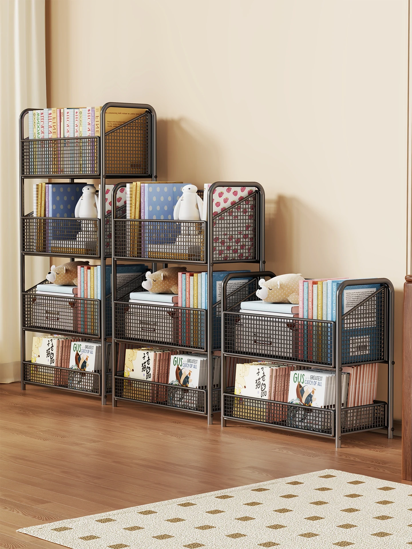 移動式ブックシェルフ - 家庭用多層収納カート!デスク下のスペースを有効活用し、書籍やお菓子をすっきり整理。オフィスでも大活躍のコンパクト設計!