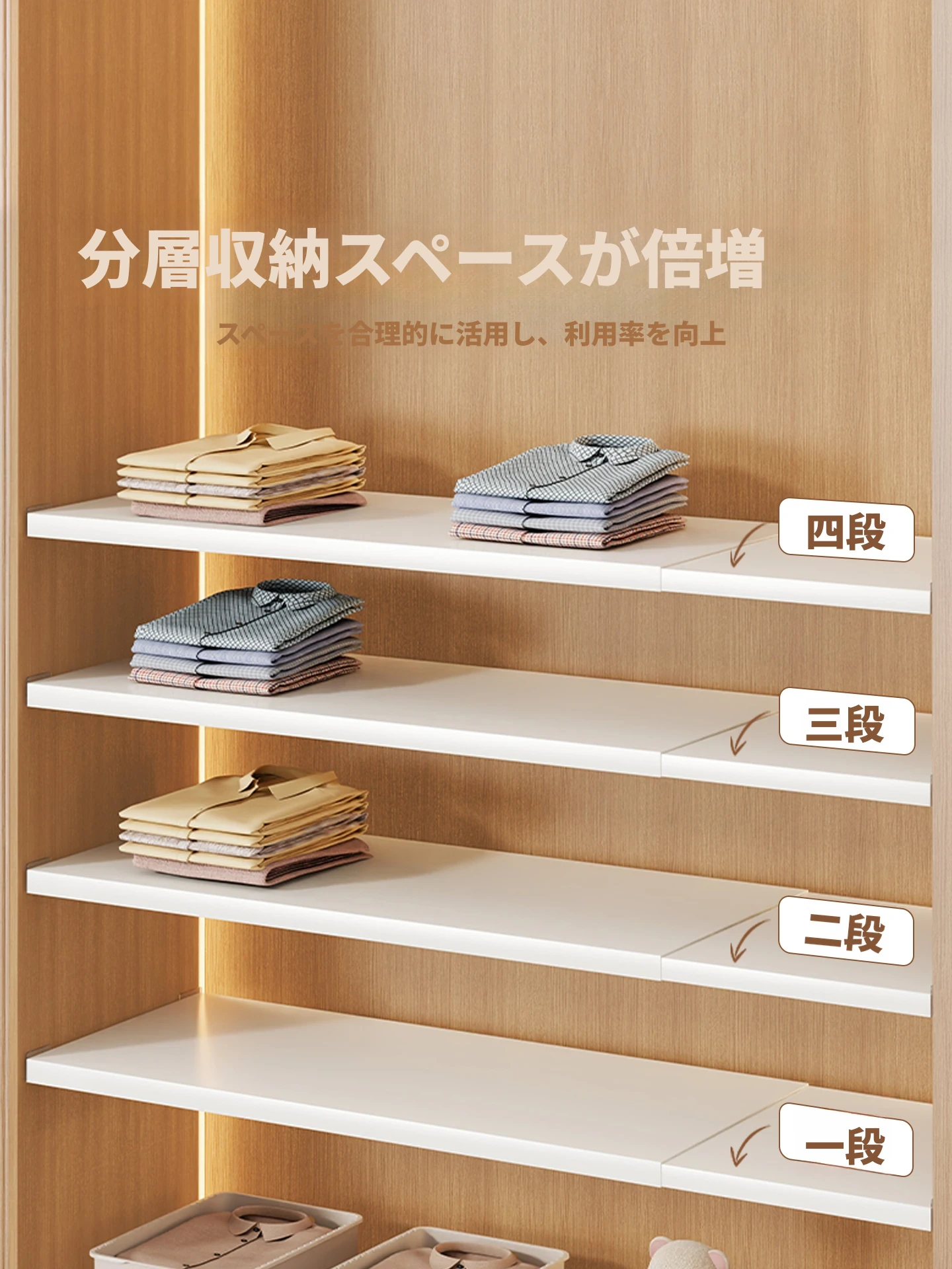穴あけ不要!伸縮式収納棚でスッキリ整理整頓!多層分割で、キャビネット内を有効活用する収納の必需品!おしゃれで便利な収納アイテムを手に入れよう!