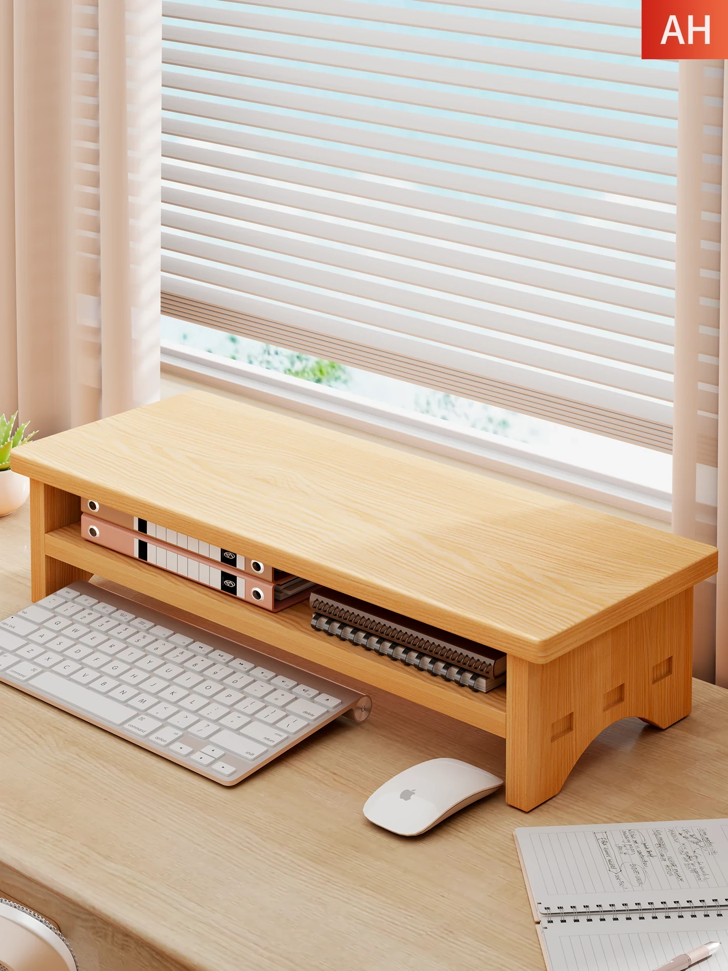 天然木製デスクトップ用モニター台 - スタイリッシュなデザインでディスプレイを高くし、快適な作業環境を実現!オフィスや自宅に最適なキーボードトレイ付きの多機能スタンド。