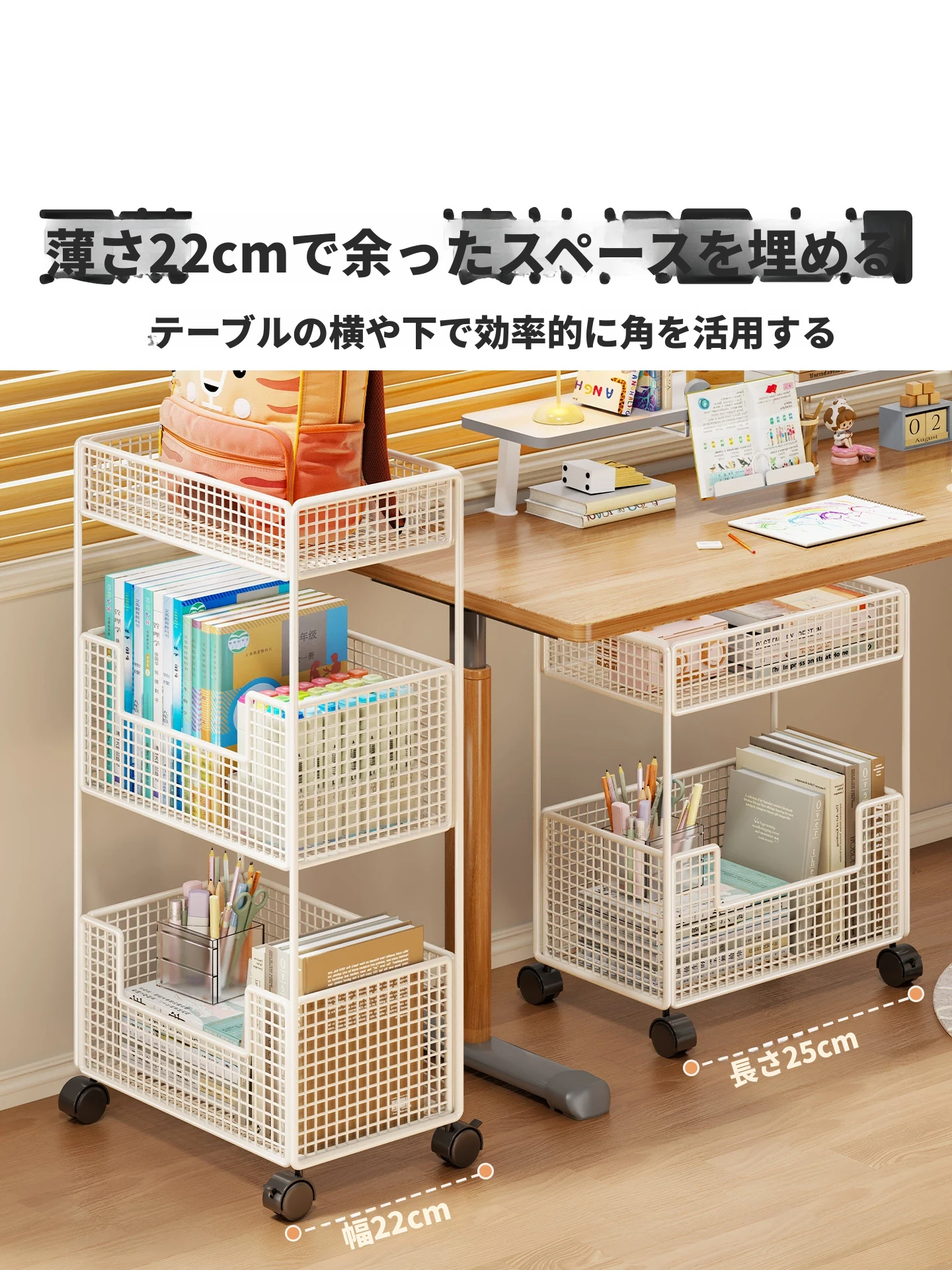 キャスター付き移動式ブックシェルフ - 学生に最適な多層本収納ラック!デスクサイドにぴったりなコンパクトな書棚で、教科書やお気に入りの本をすっきり整理。おしゃれで実用的な収納ソリューションを手に入れよう!
