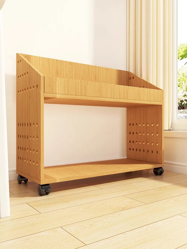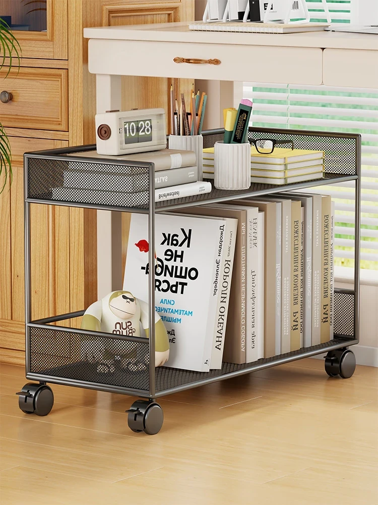 移動式ブックシェルフ&デスクサイド収納カート、キャスター付きで便利!学生や教室に最適な書籍収納ラック。スペースを有効活用し、整理整頓をサポートします!