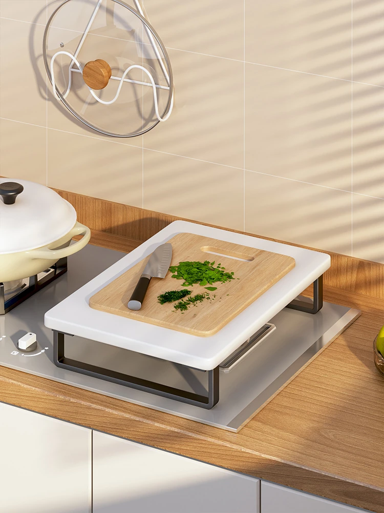 電磁調理器用スタンド 高さ調整可能 ガスコンロカバーとまな板を兼ね備えた便利な調理台 微波炉用の高台としても活用できる多機能スタンド!キッチンをスッキリ整理し、料理をもっと楽しく!