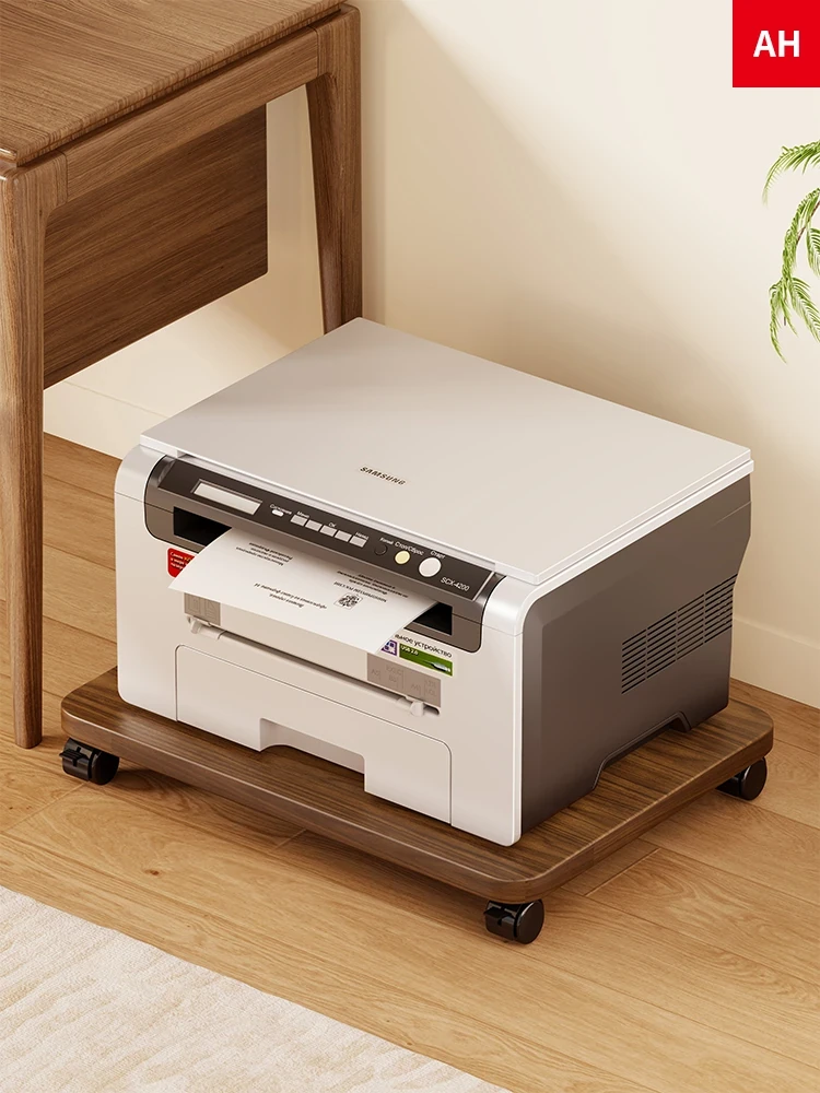 実木製プリンター収納ラック - オフィス用、移動可能な整理棚、パソコン本体用スタンド、便利な収納スペースで、作業効率をアップ!