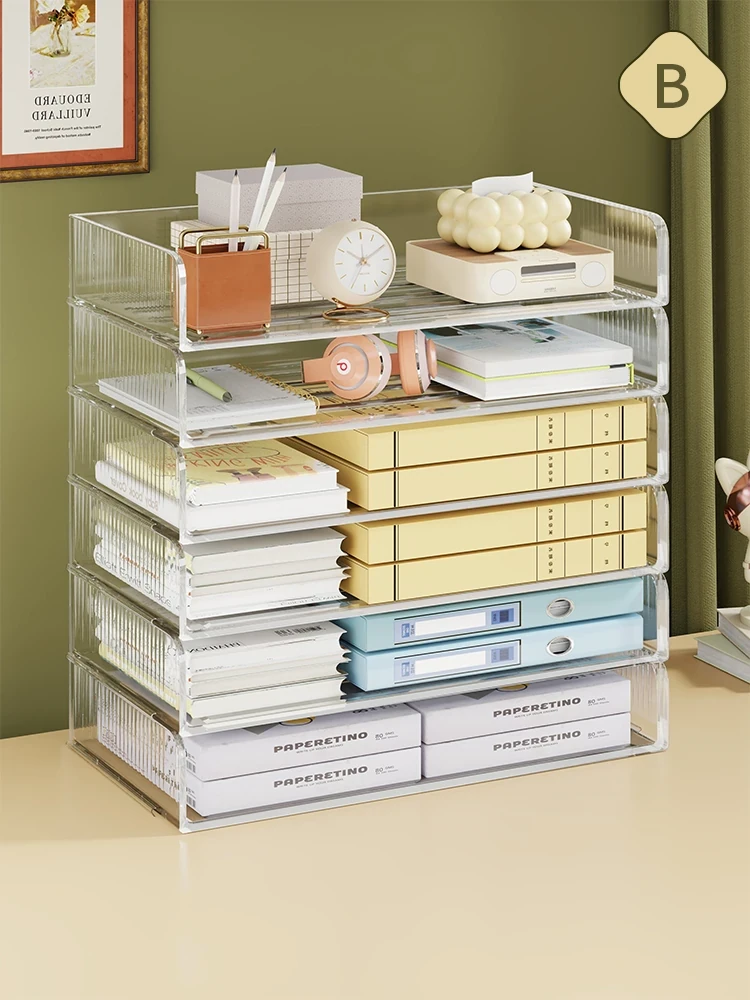 オフィスデスク用多層収納ラック - すっきり整理できるファイルホルダー!スタイリッシュなデザインでデスク上をスマートに整頓。積み重ね可能な収納ボックスで、資料も本もすっきり整理!
