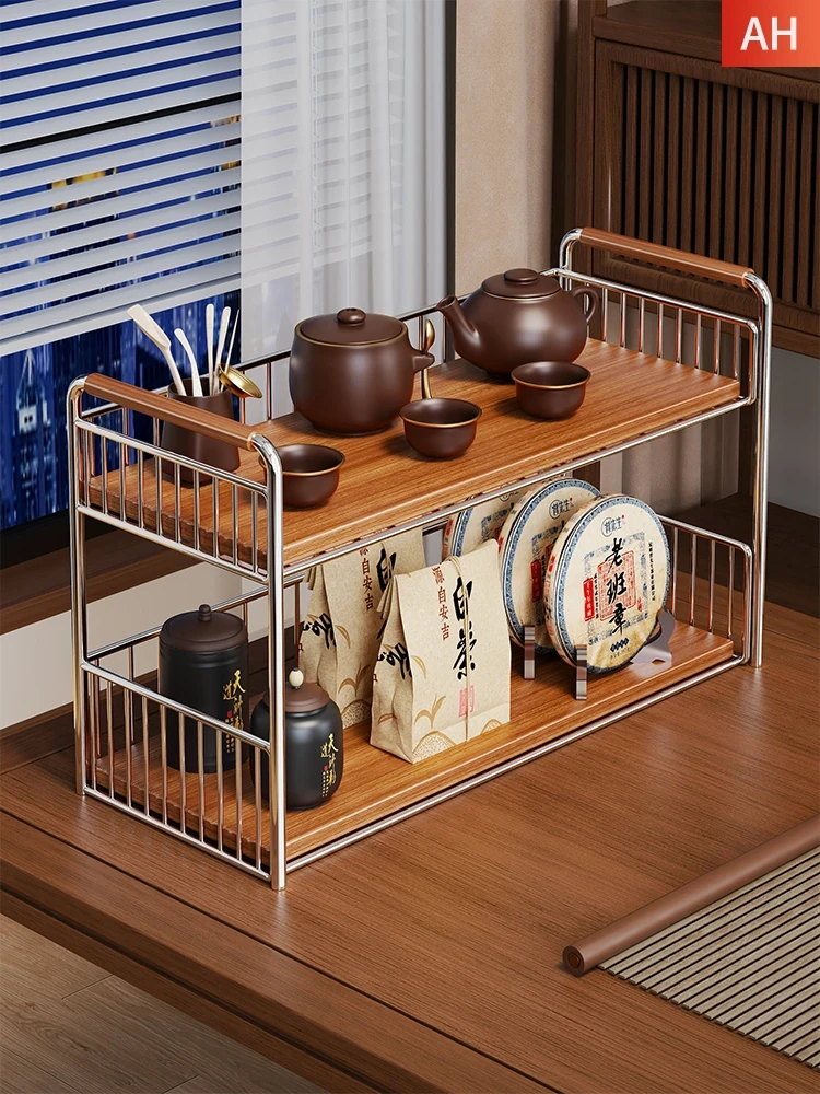 レトロな鉄製ティーラック - 小型茶室用収納棚、紫砂壺や茶具を美しく展示するための絶妙な茶卓!おしゃれなインテリアで、あなたのティータイムを特別なものに。