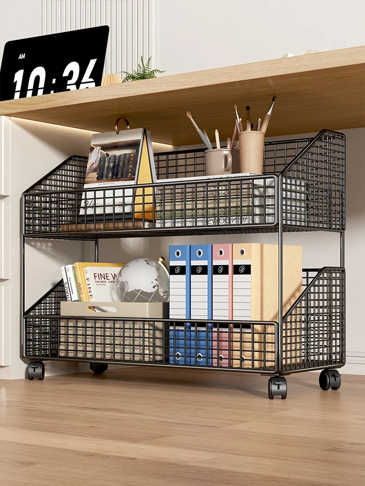 移動式デスク下収納ラック!家庭用やオフィスで大活躍の小型書棚。キャスター付きで使いやすく、書籍や文房具をスッキリ収納!あなたの作業スペースをもっと快適に整えます。