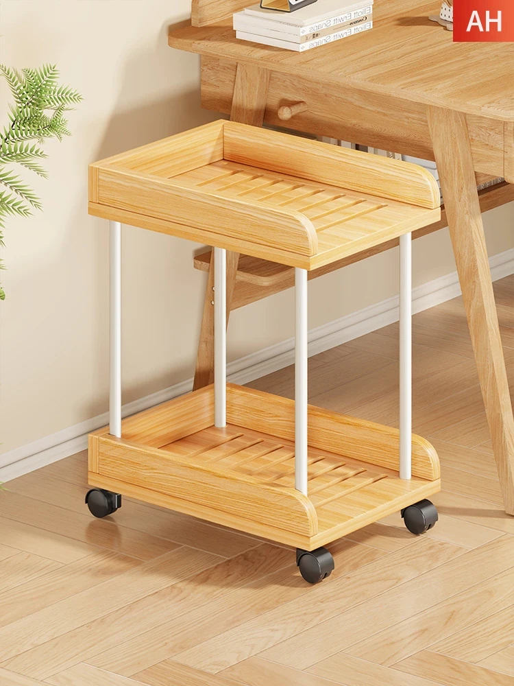 実木製のオフィス用多段移動収納ラック - コンピュータタワーをすっきり整理!スタイリッシュで機能的、あなたの作業スペースを美しく整えます。