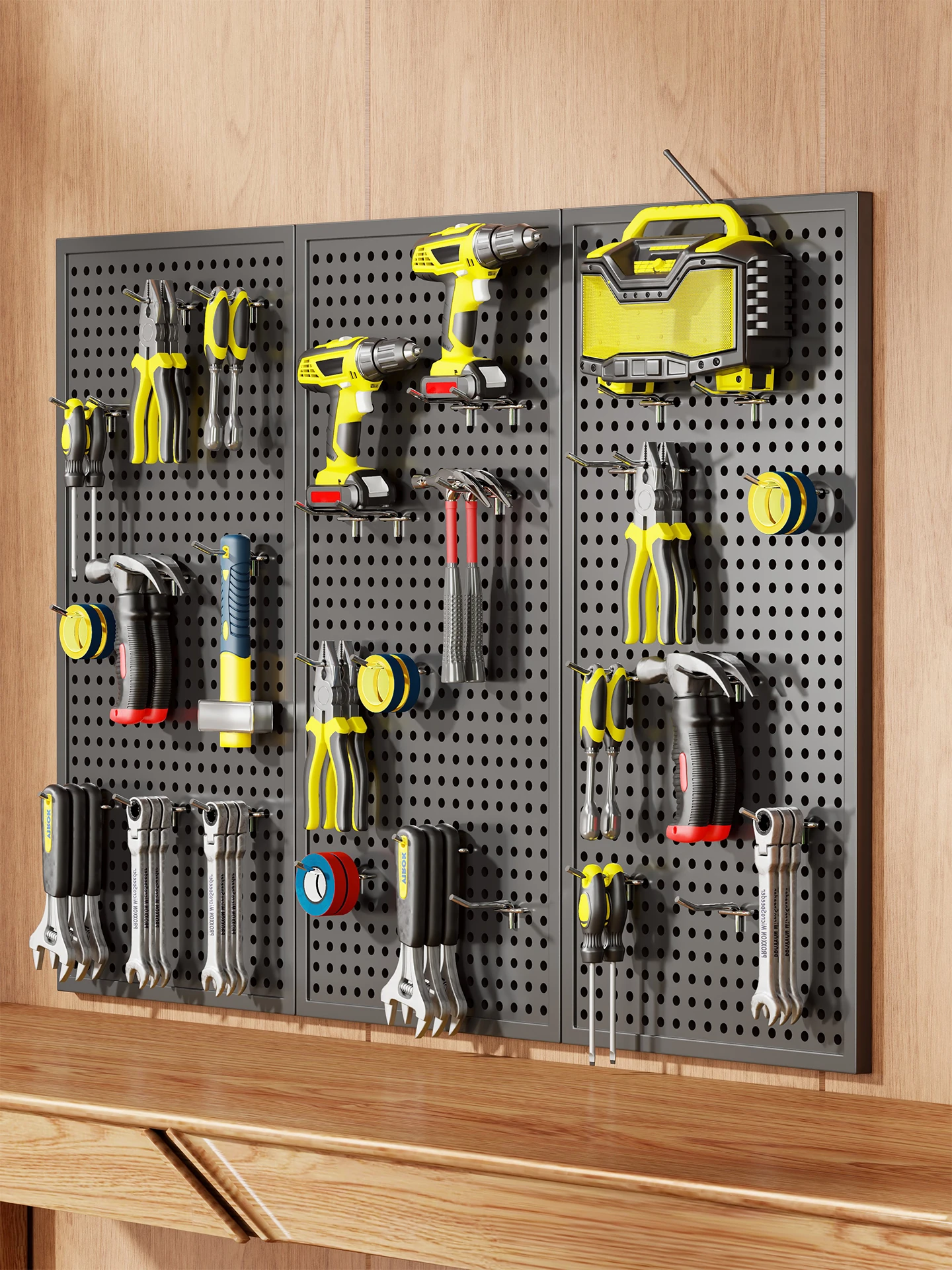多機能ツールウォールパネル 金属穴あきボード 壁掛け収納ラック ステンレス製整理棚 - あらゆる工具をすっきり整理!強力な耐久性で、作業スペースを広げる必需品!